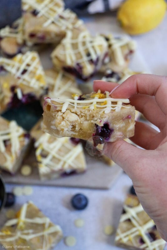 So… yep, THESE ARE THE BEST. I am honestly astounded at how much I love these, and I am sure you will all love them as well. Think a gooey and delicious lemon flavoured blondie, with white chocolate chunks, and some fresh blueberries… my idea of heaven. I am lemon & blueberry obsessed as it is, so in a ~basicallywhitechocolatebrownie~its HEAVEN.