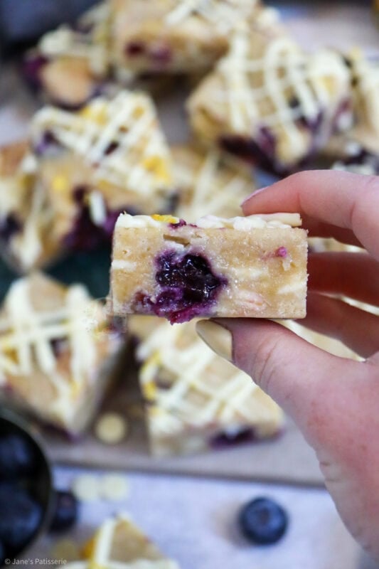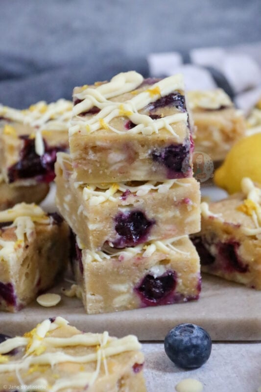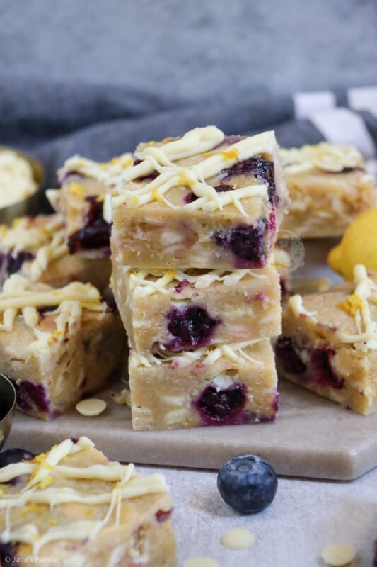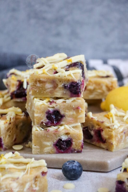 Lemon and blueberry together is a wonderful combination – as good as strawberries and chocolate, apple and cinnamon and even caramel and ginger! If you love the taste of lemon and blueberry together like these lemon & blueberry blondies.. you might love my lemon & blueberry cake, and my lemon & blueberry cheesecake!