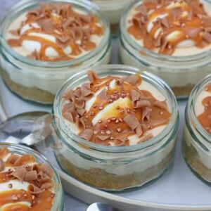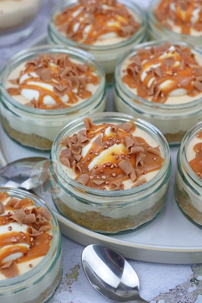 - As these cheesecakes are in ramekins or glasses as you can see in the pictures, its actually easier if the cheesecake isn't as thick as a regular No-Bake Cheesecake such as my no-bake salted caramel cheesecake.