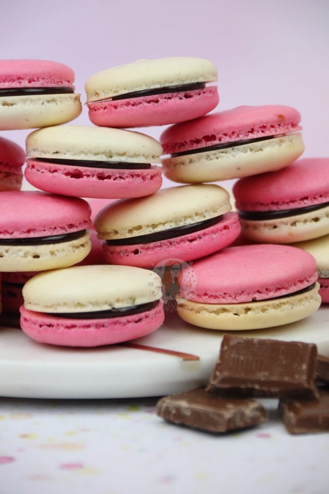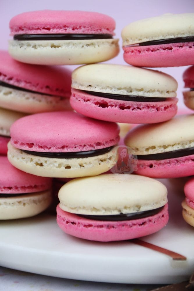 A delicious macaron twist on a classic ice cream… a vanilla shell, chocolate ganache filling, and a strawberry shell… Neapolitan macarons!