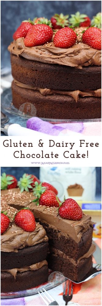 A two layer gluten free and dairy free chocolate cake for everyone to enjoy! Fudgey, chocolatey, and DELICIOUS.