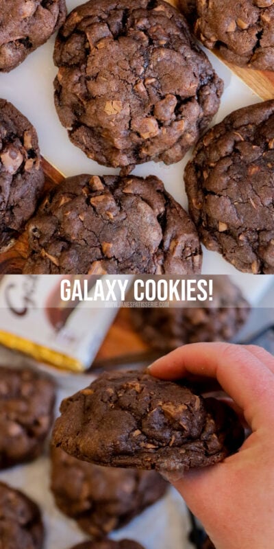 Delicious, gooey, crunchy and YUMMY giant Galaxy chocolate chip cookies, full of Galaxy goodness!