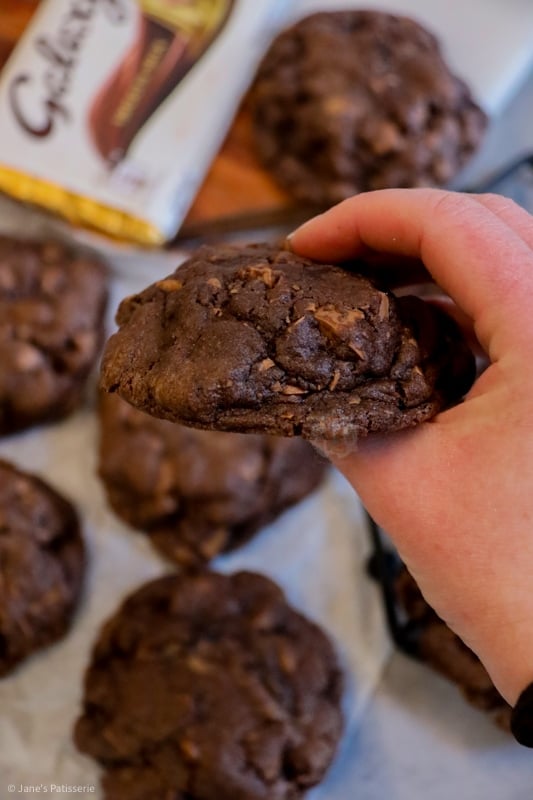 I’ve been feeling a bit of a cookie craving recently, and I’m not even sure why. I know part of it is to do with how insanely successful my Kinder Bueno cookie bars were, and still are now… but I was craving something even more chocolatey… something DELICIOUS and heavenly. These cookies were born.