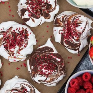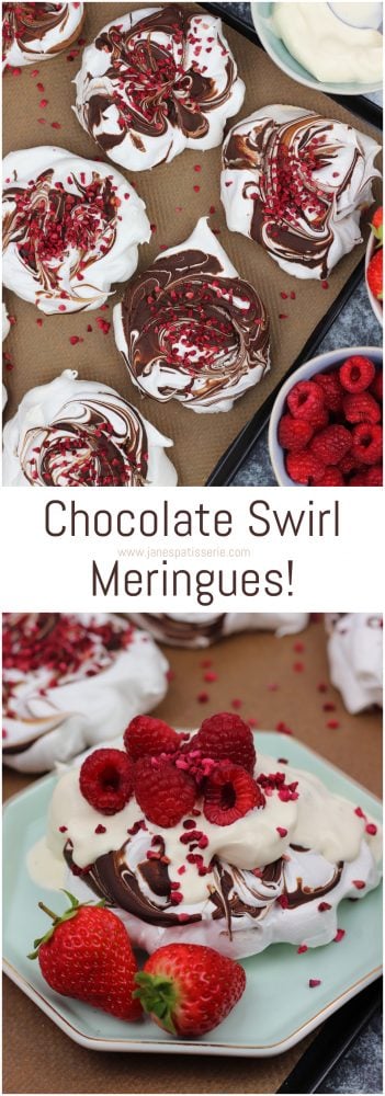 Individual chocolate swirl meringues, perfect for an easy dessert!