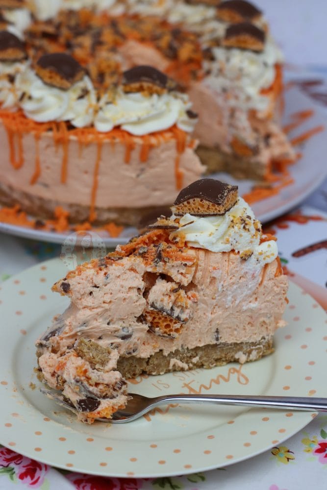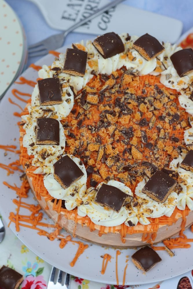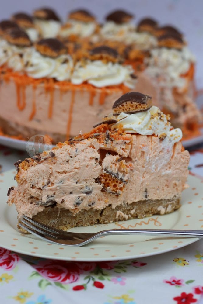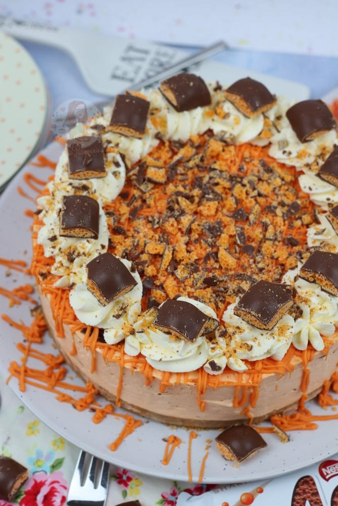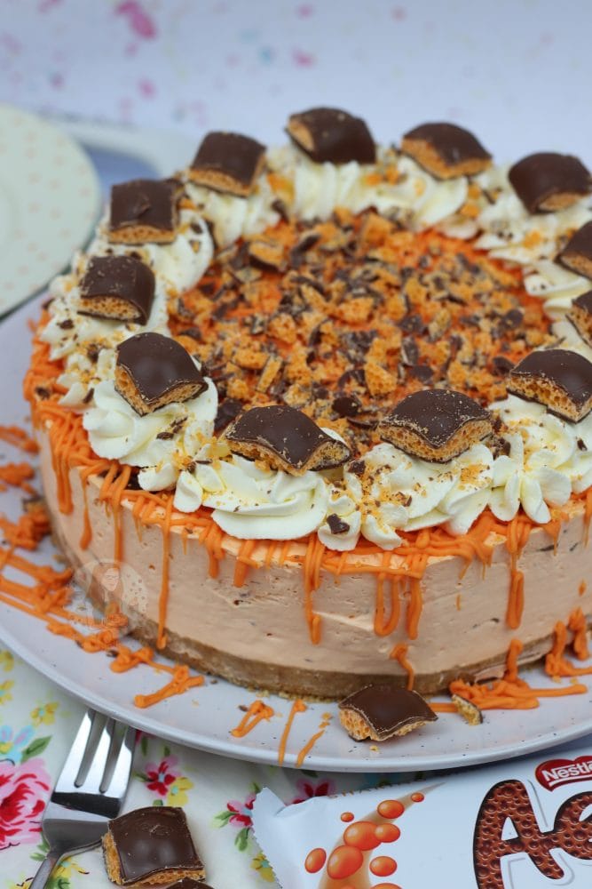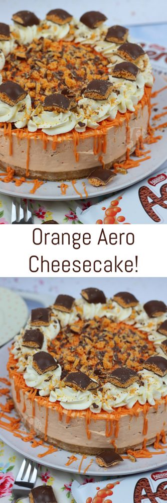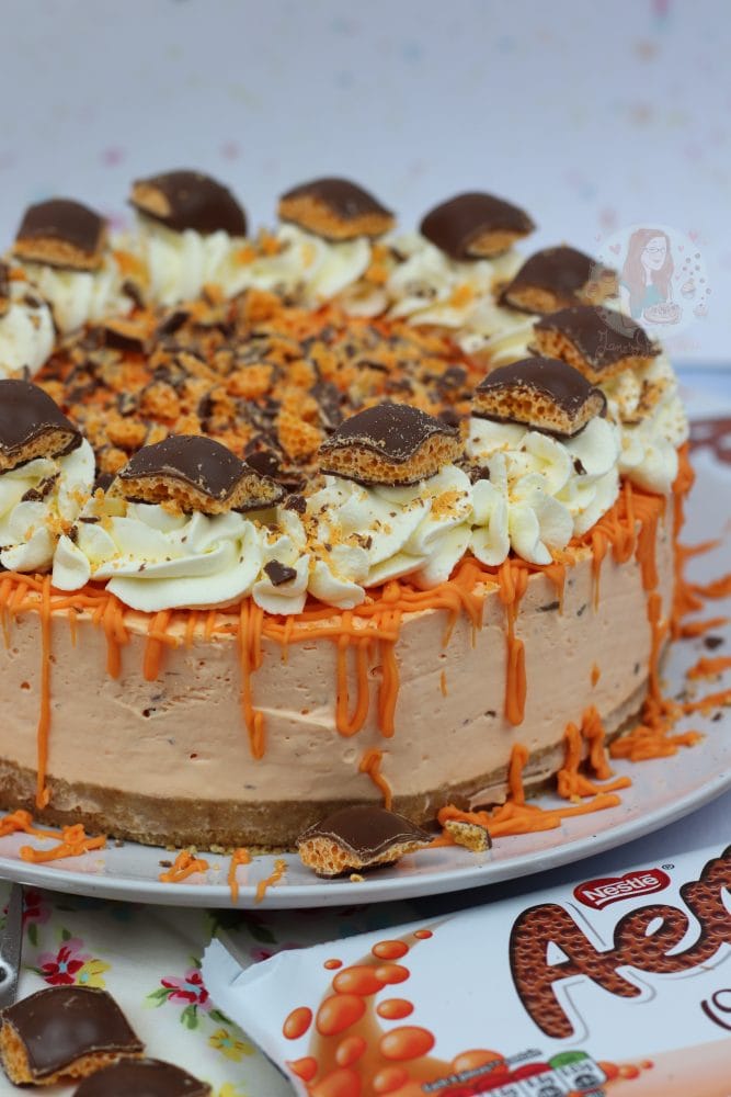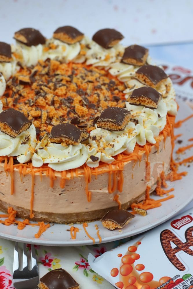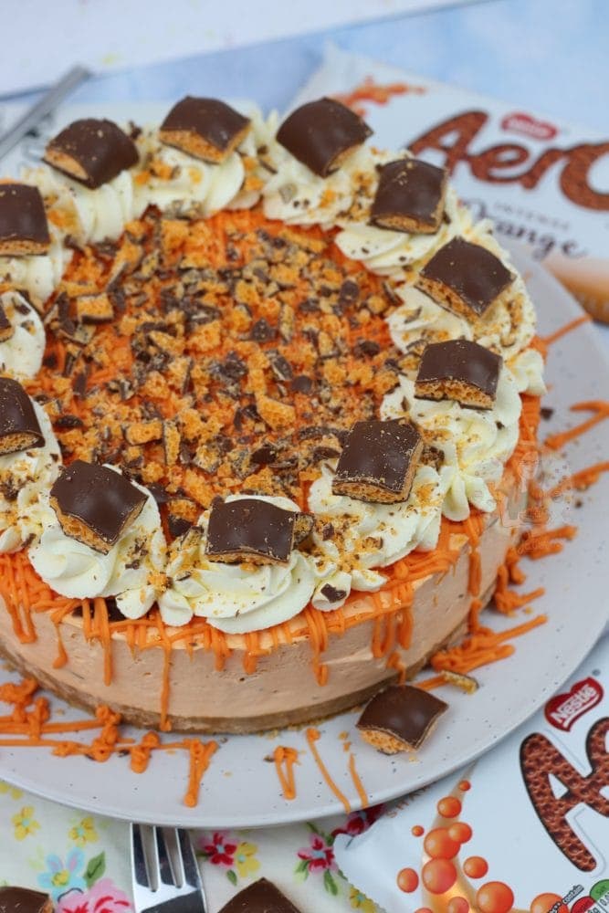 A Delicious No-Bake Orange Aero Cheesecake with Orange Cheesecake Filling, Full of Orange Aero Pieces!!