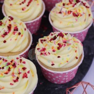- Pipe onto your cupcakes how you please, and sprinkle with your favourite sprinkles!