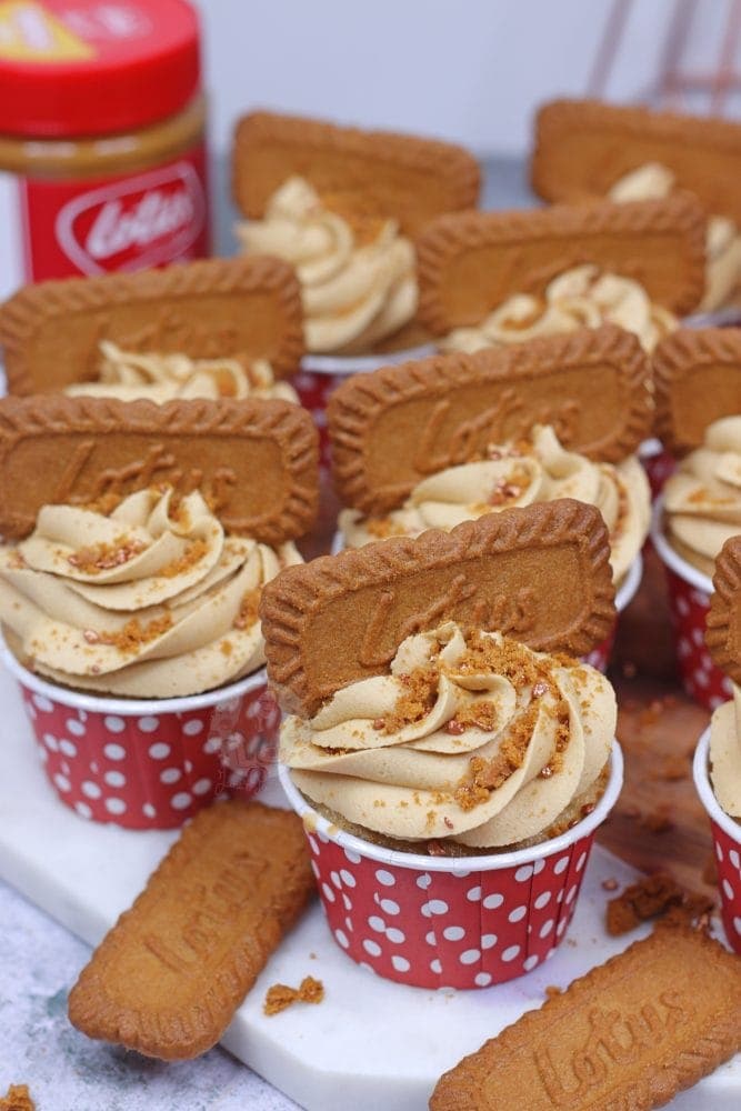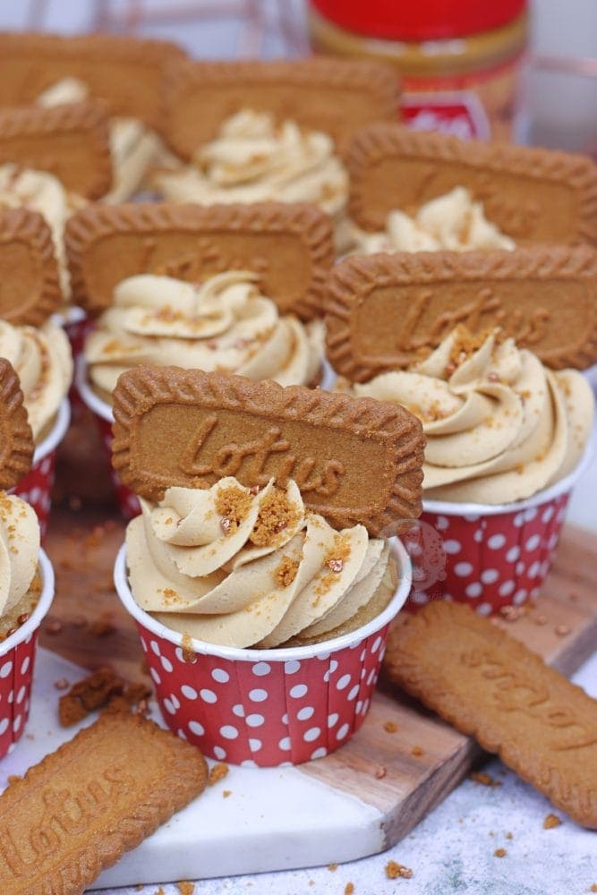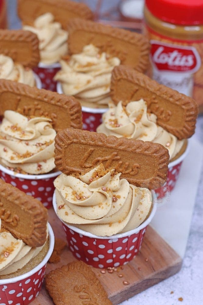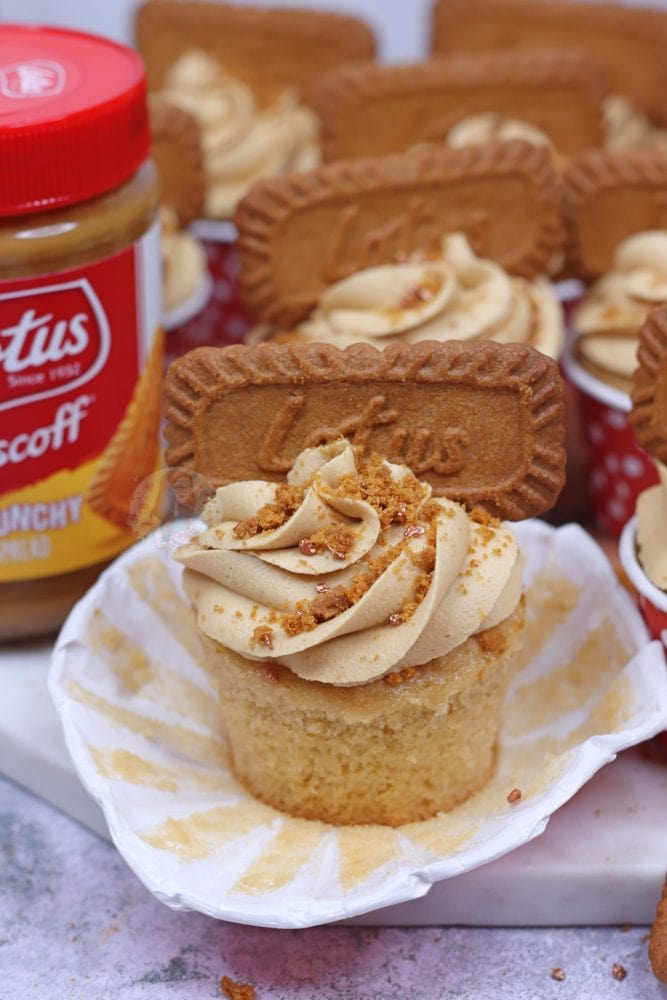 Easy and delicious vegan Biscoff cupcakes with a Biscoff centre, and Biscoff vegan buttercream!