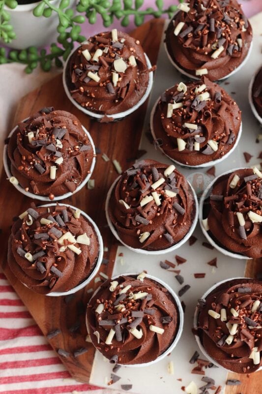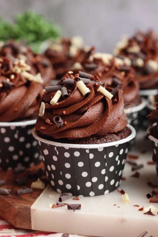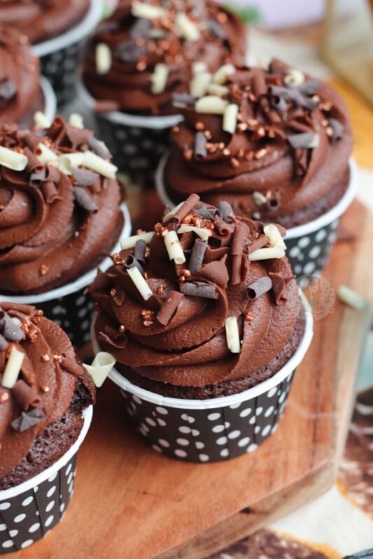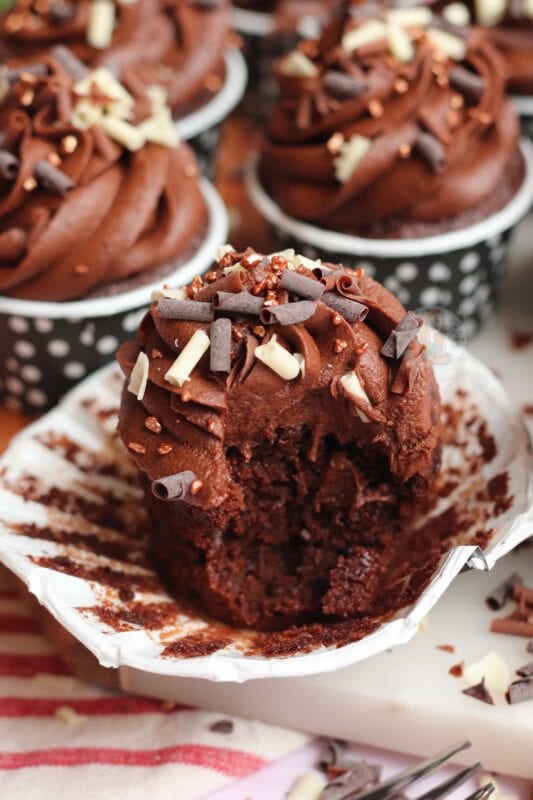 From the start I will say that these are quite a bit more intense than the classic ‘chocolate cupcake’. If you are after something delicious, but easier and more basic, then check out my chocolate cupcakes recipe! They’re more chocolate Victoria sponge based, whereas these beauties are intense and wonderful and super fudgy like they should be.