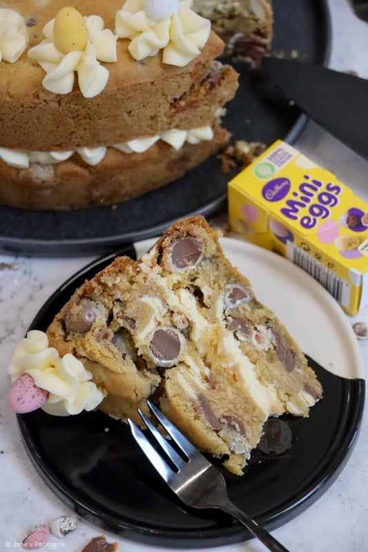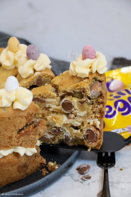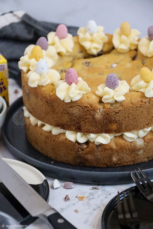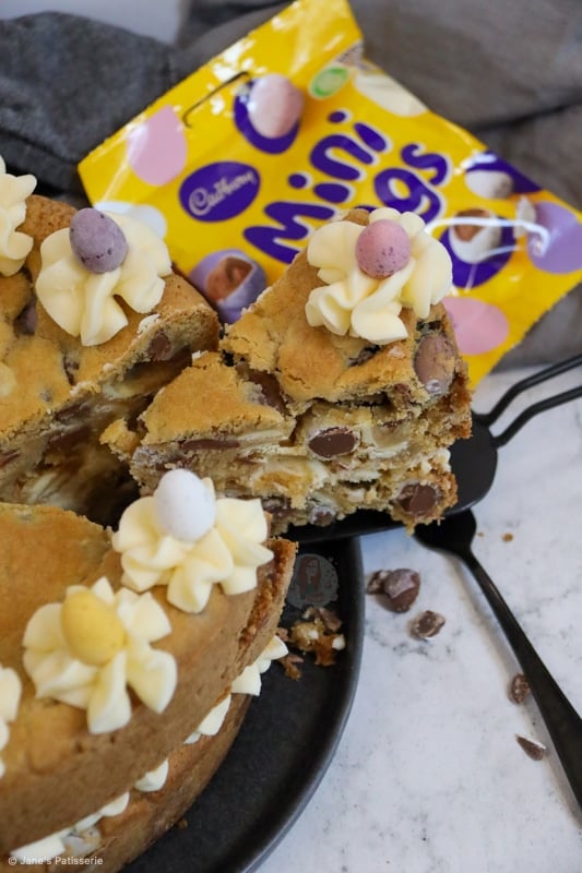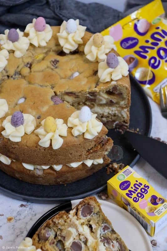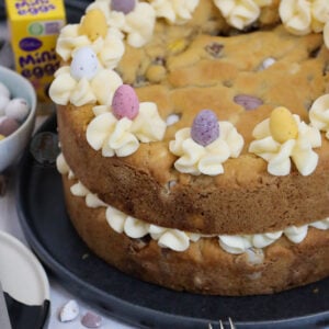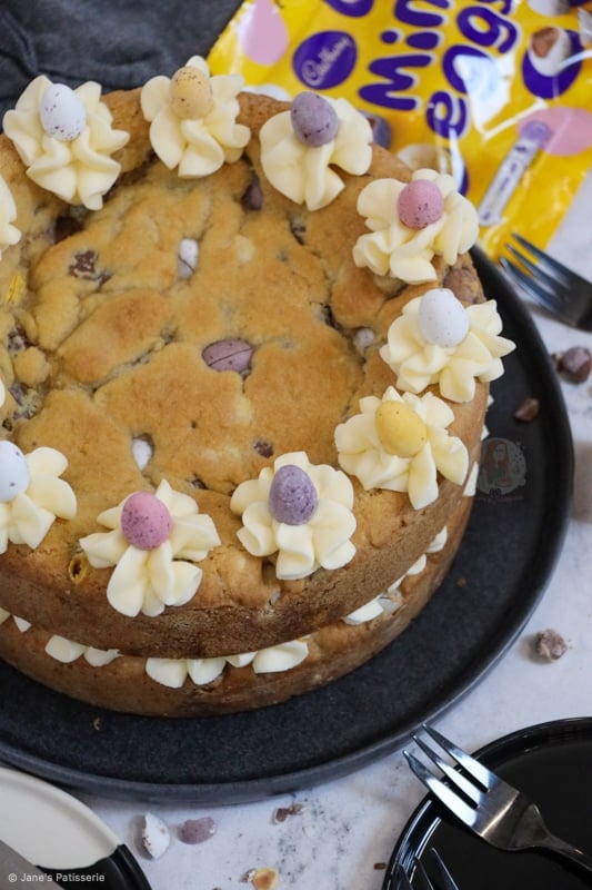 This recipe really is just a non ‘chocolate cookie’ version of my triple chocolate cookie cake, and with Mini Eggs in place of M&Ms. There is no difference to it other than that. However, I have had a lot of people ask for a cookie cake recipe that isn’t chocolate flavoured, so I went ahead anyway.