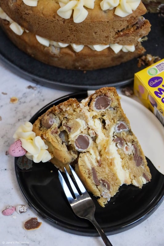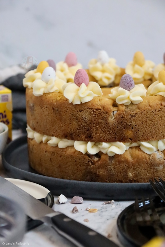 Two layer Mini Egg cookie cake with vanilla buttercream frosting and ALL the Mini Eggs!