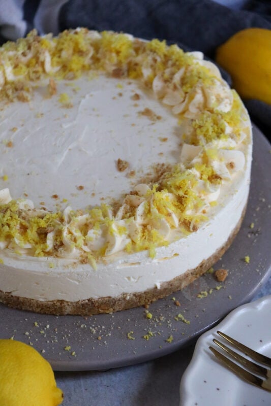 - Sprinkle the cheesecake with lemon zest and some biscuit crumbs to make it look nice, and then enjoy!