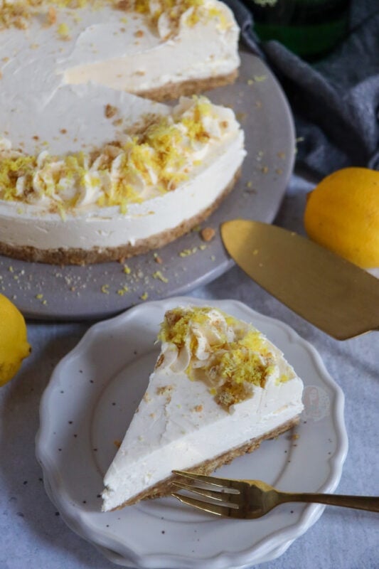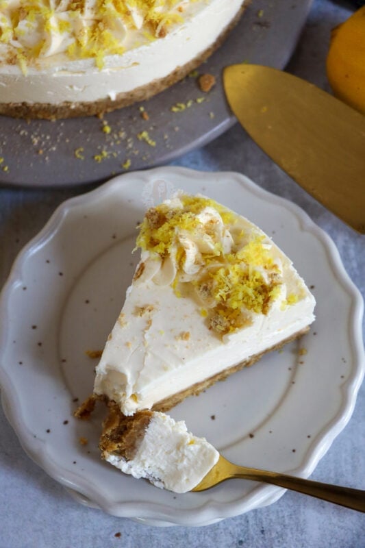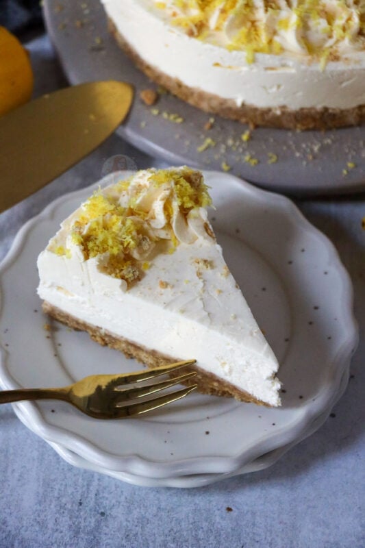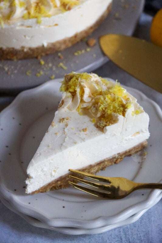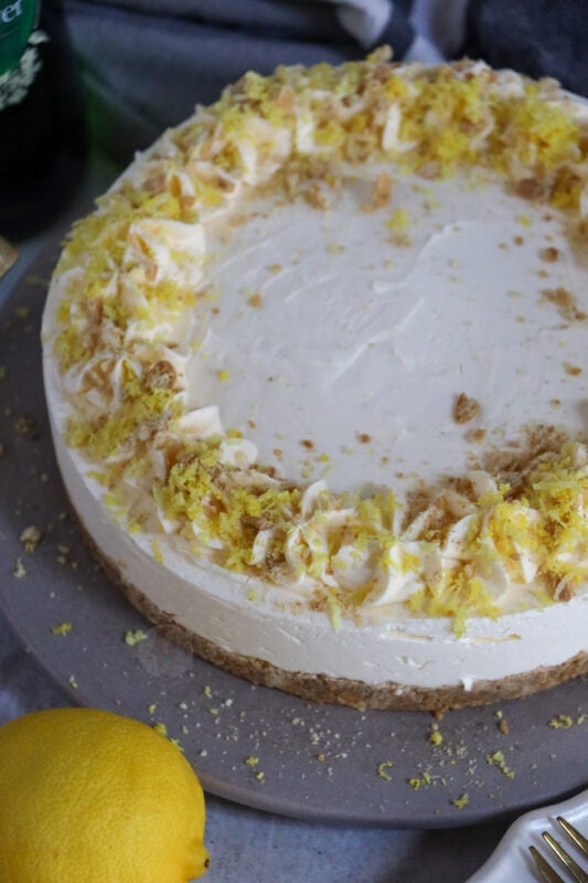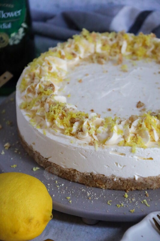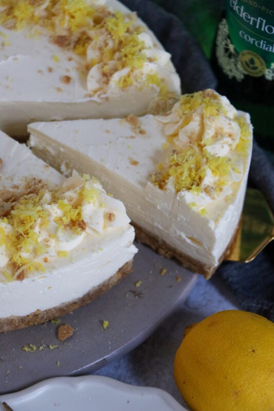 An easy no-bake lemon and elderflower cheesecake – fresh, summery, and delightful!