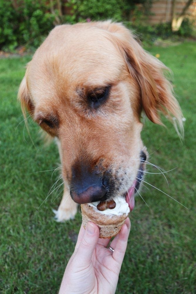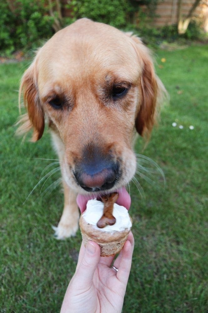For his first two birthdays I wanted to make him dog friendly cupcakes (puppy + cupcakes = pupcakes), and I either haven’t had time, or have got him some other treats… but this year I was determined to actually make them. And I am so glad I did, because they are 100% his favourite treat ever.