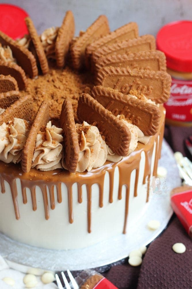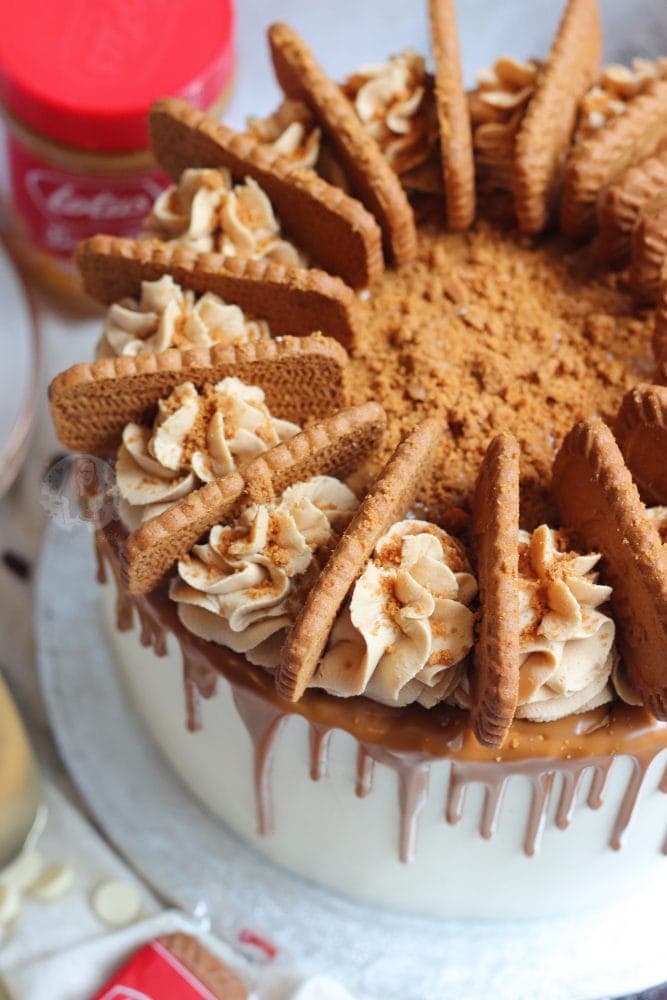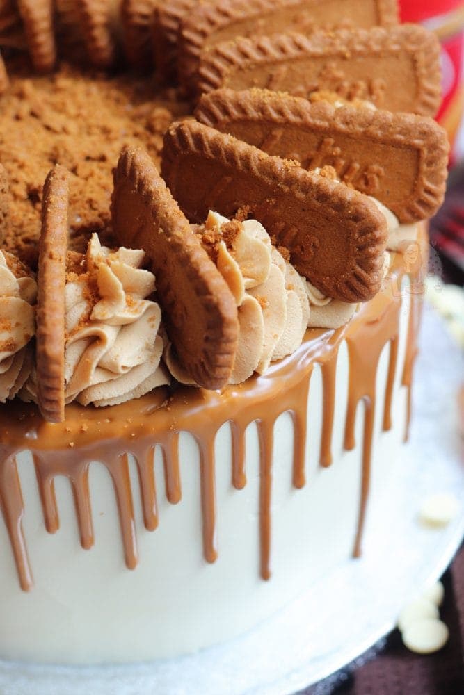 I realise that the white chocolate ganache shell of the cake might not be the ideal for some, and sound terrifying for others but I thought this cake would be the ideal time for it. I personally adore how it looks on the cake with the Biscoff drip creating such a good contrast!
