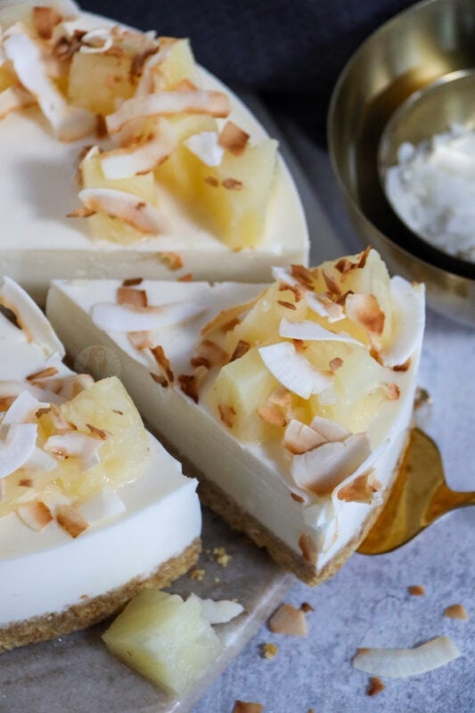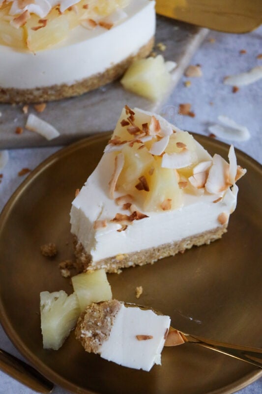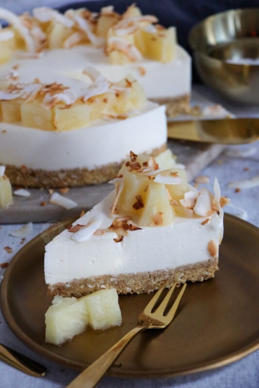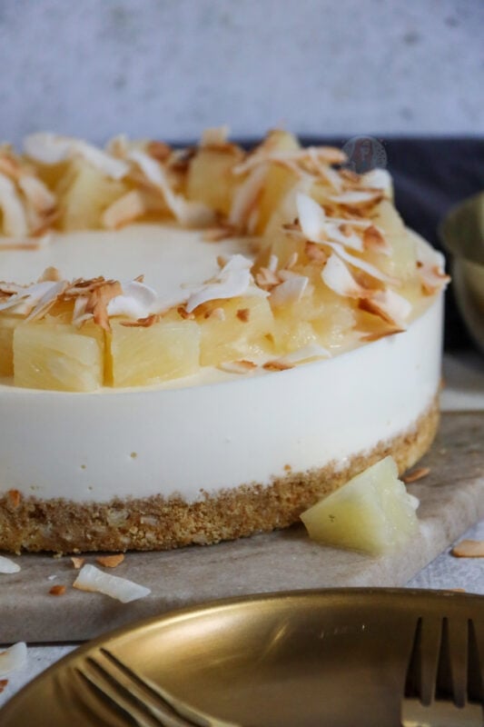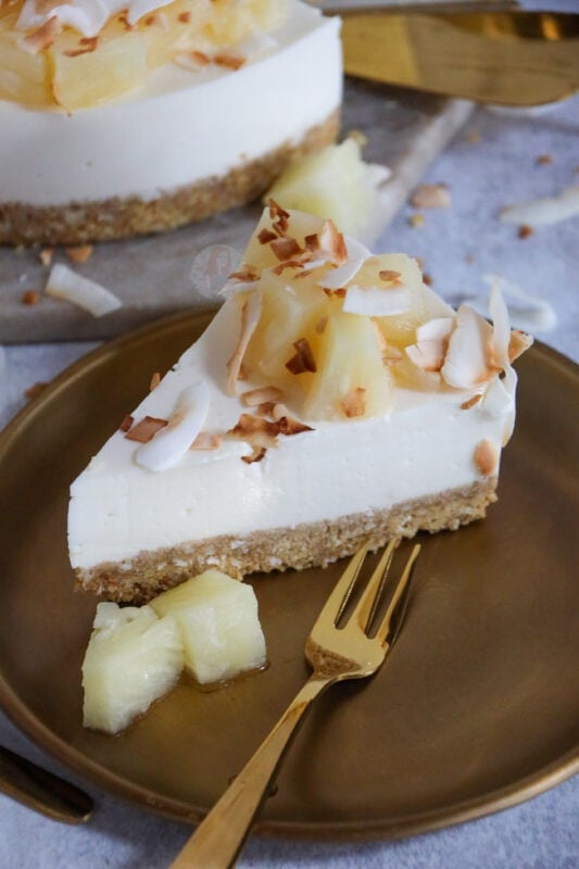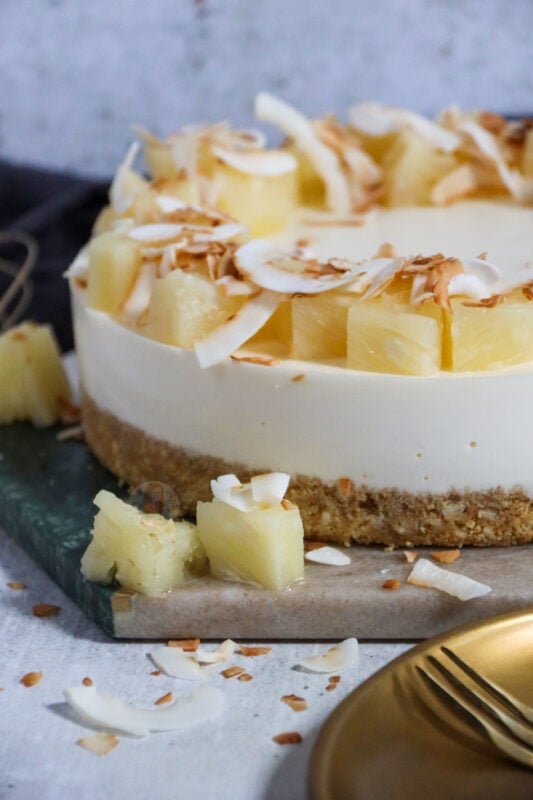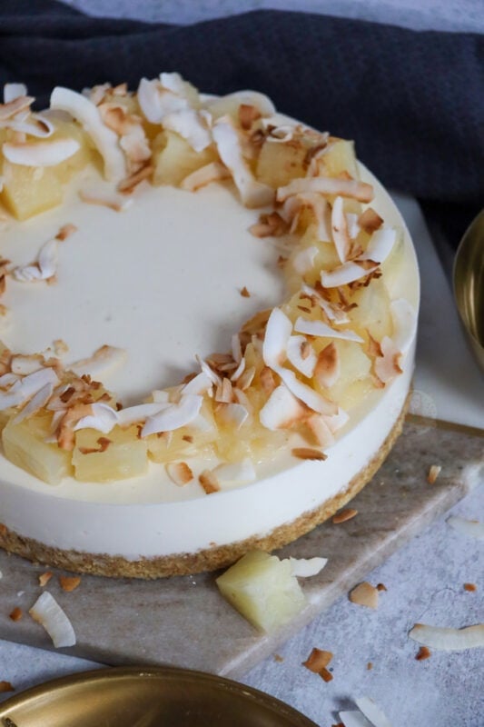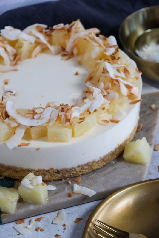 You can feel free to try the cheesecake without a setting agent, but with the pineapple juice, and rum added in, I really much preferred it with the setting agent. I hope you guys love this piña colada cheesecake as much as I did! Enjoy! X