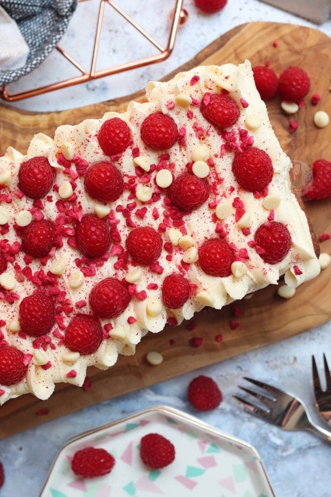 The cake mix itself is just a regular basic cake sponge. It’s the best kind of sponge to use, and why mess with what isn’t broken?! Add in the raspberries, and white chocolate and boom you’re done. It’s so easy and so delicious.