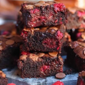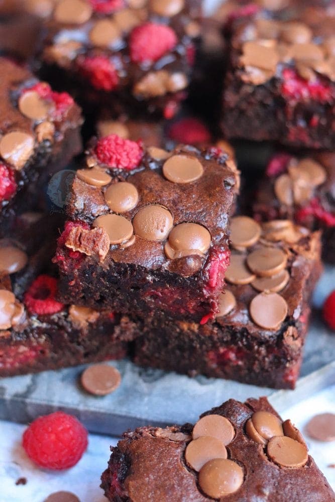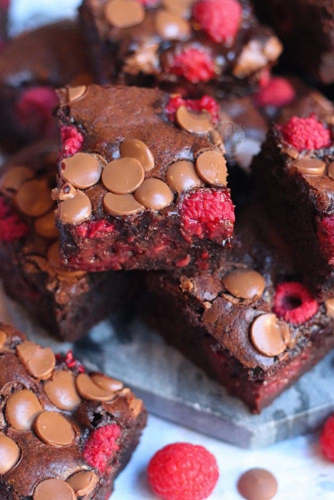 Thick, gooey and oh so fudgey chocolate chip brownies with raspberries.. the perfect raspberry brownies.