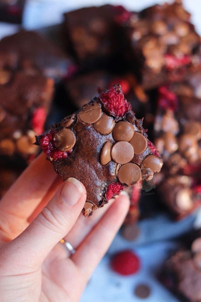 This recipe creates such thick and gooey brownies, that are oh so fudgy and utterly delicious. The fruit gives them a tartness that cuts through the sweetness, but the chocolate chips give them the chocolate pockets you crave. They really are heavenly.