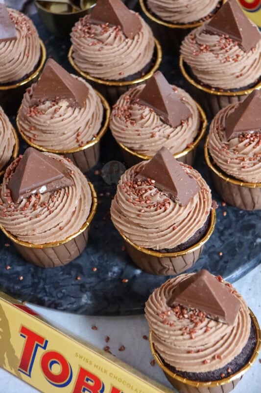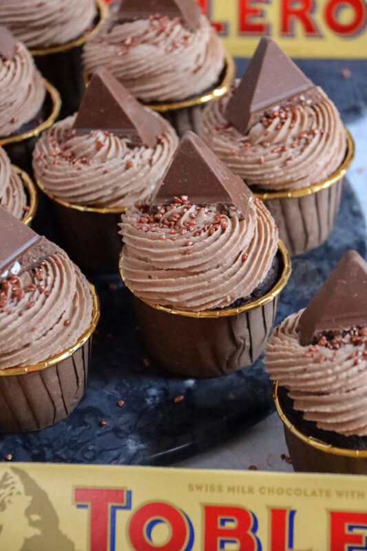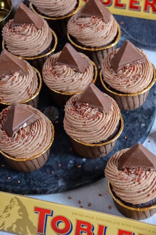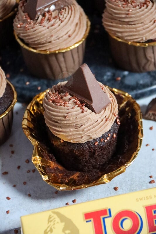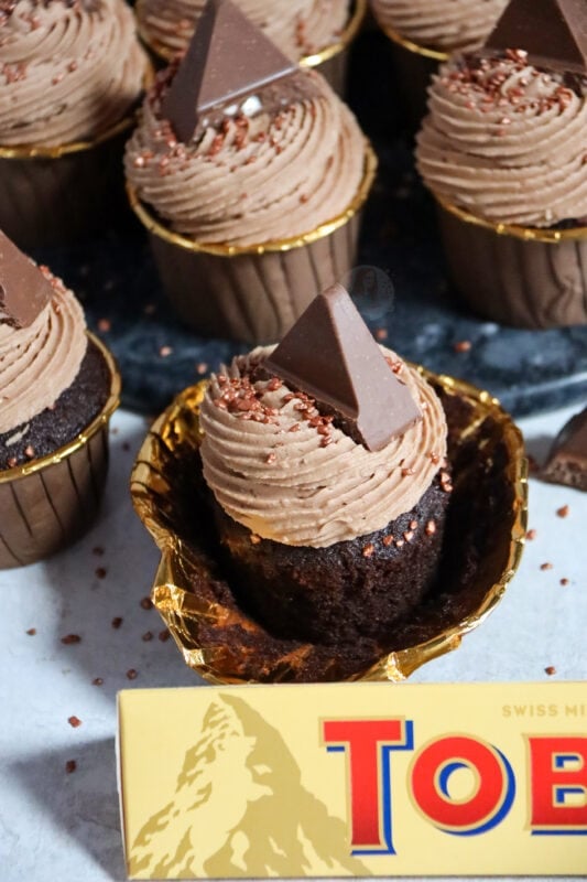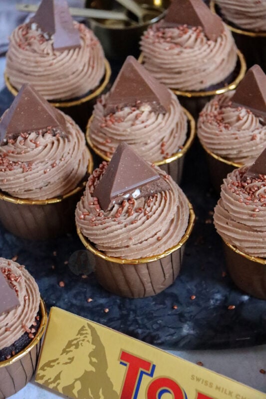 I loveeee a Toblerone, and definitely also in baked form. There are so many different flavoured Toblerone’s now, and they would all work perfectly in these cupcakes so definitely give whichever you fancy!
