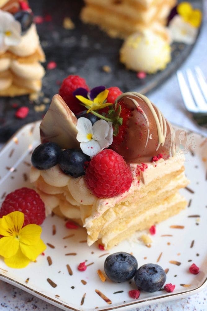 One thing I must discuss from the beginning? Is that YES it technically is a ‘cake’ even though there is no cake involved in the bake. It’s more the style of bake you could say? It would easily take the place of a cake at an occasion!