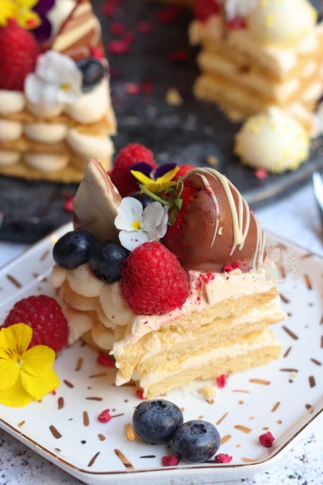 A vanilla shortbread cookie, with vanilla buttercream frosting, and all the delicious decoration… this letter cookie cake is perfect for birthdays and all occasions!