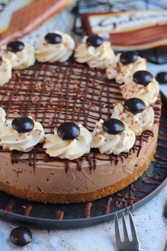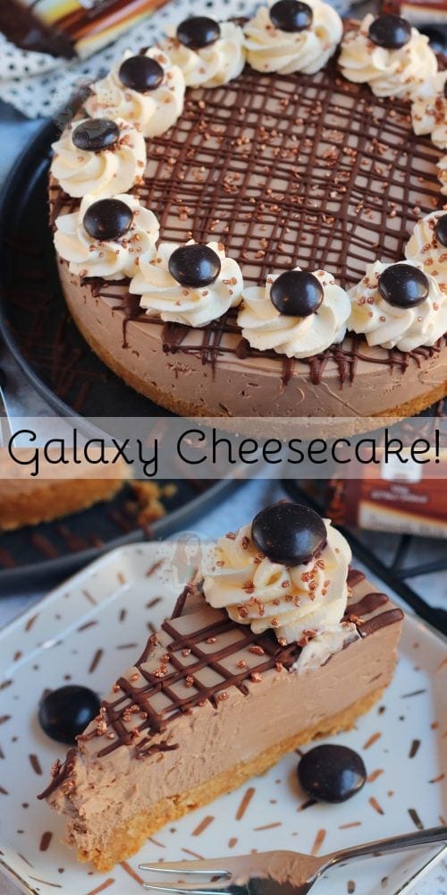 A creamy, sweet, and delicious no-bake Galaxy cheesecake with whipped cream, Galaxy chocolate, Galaxy minstrels and more!