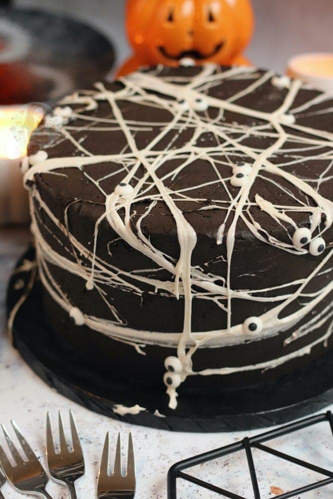 Spooky spider web cake