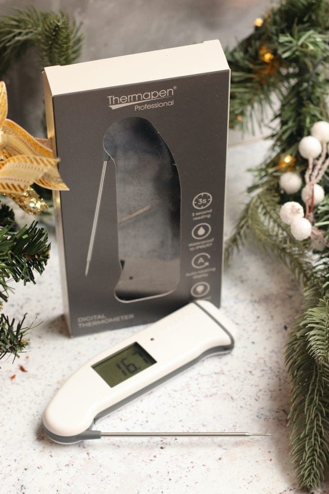 I’ve had the type of thermometer in the past that is meant to clip onto the pan, but I find them VERY annoying to use – whereas this one?! Simple fold out the thermometer, poke it into the pan or bake, and it will very quickly (And accurately) tell you the temperature in centigrade – so useful!