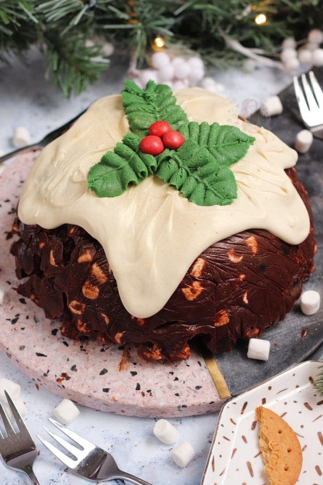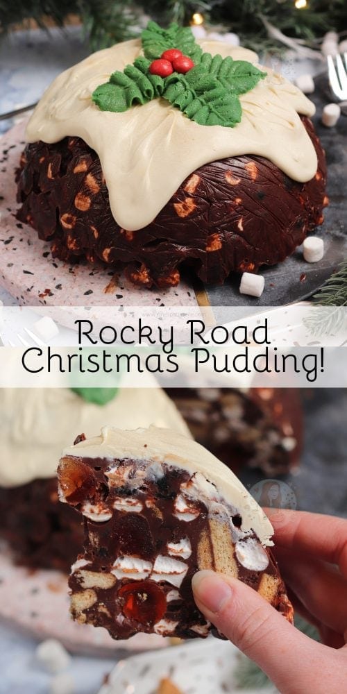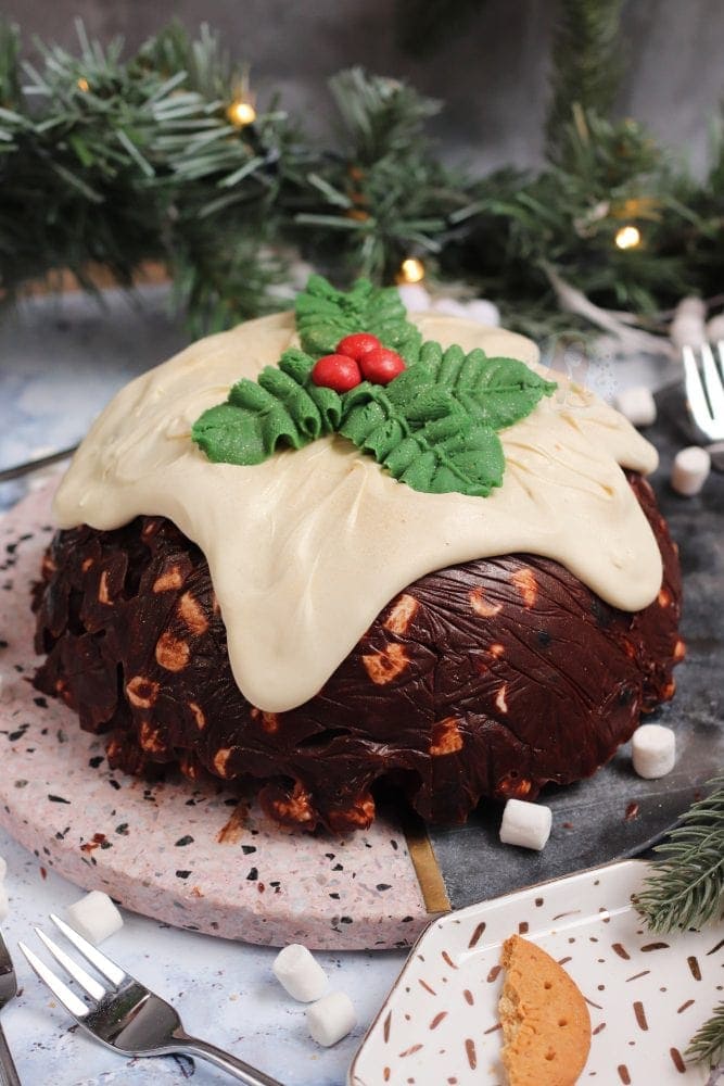 A no-bake chocolate rocky road christmas pudding – a fun alternative for those who want something chocolatey for christmas!