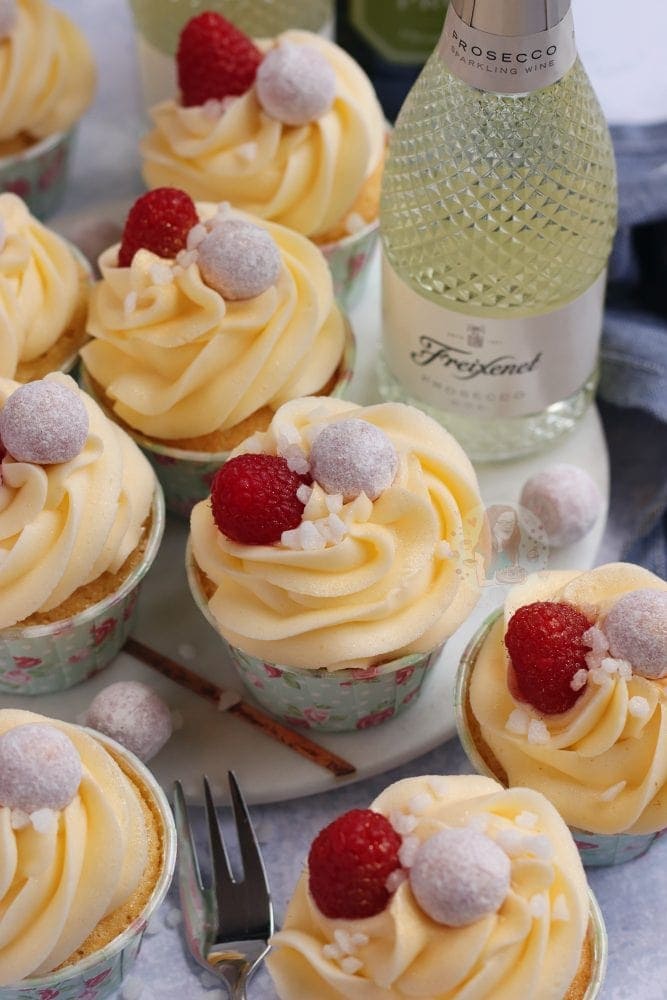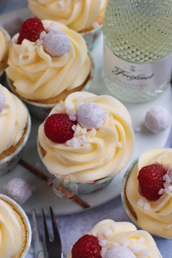 I’ve made a champagne cheesecake before (which you can obviously use prosecco for instead), and a raspberry & Prosecco trifle – but never a real “bake”! I thought cupcakes would be cute – and I just love how they turned out!