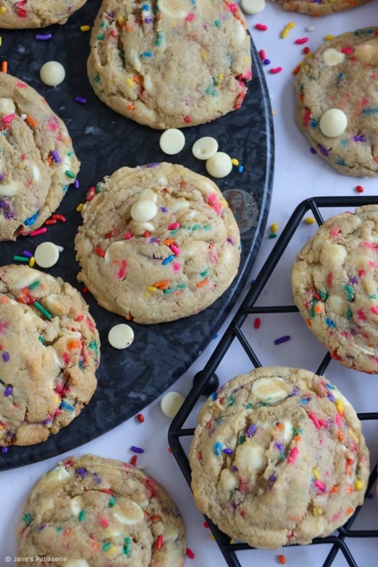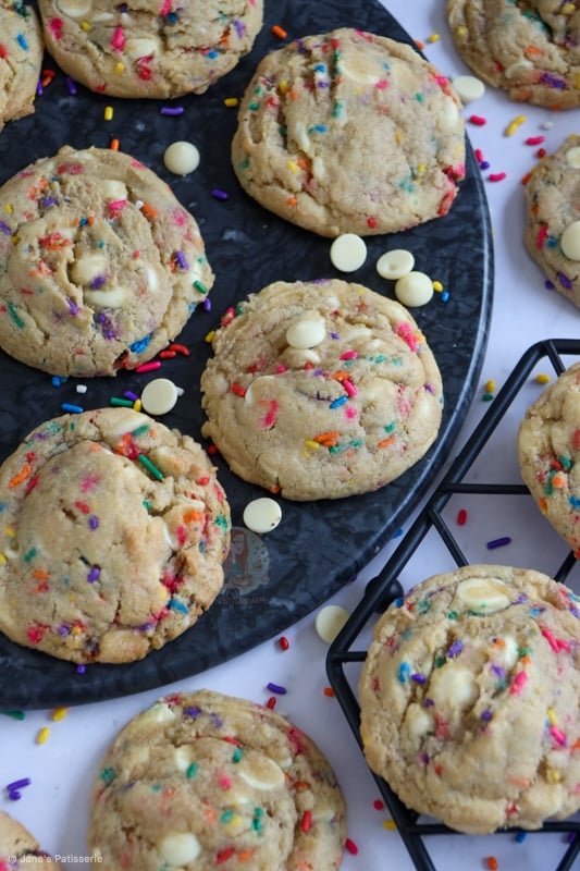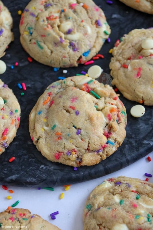 Sweet, delicious and easy-to-bake funfetti cookies studded with white chocolate chips!
