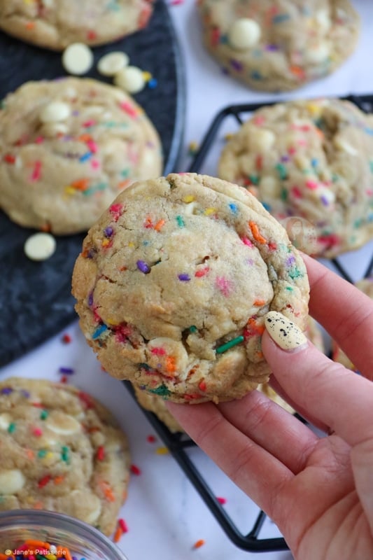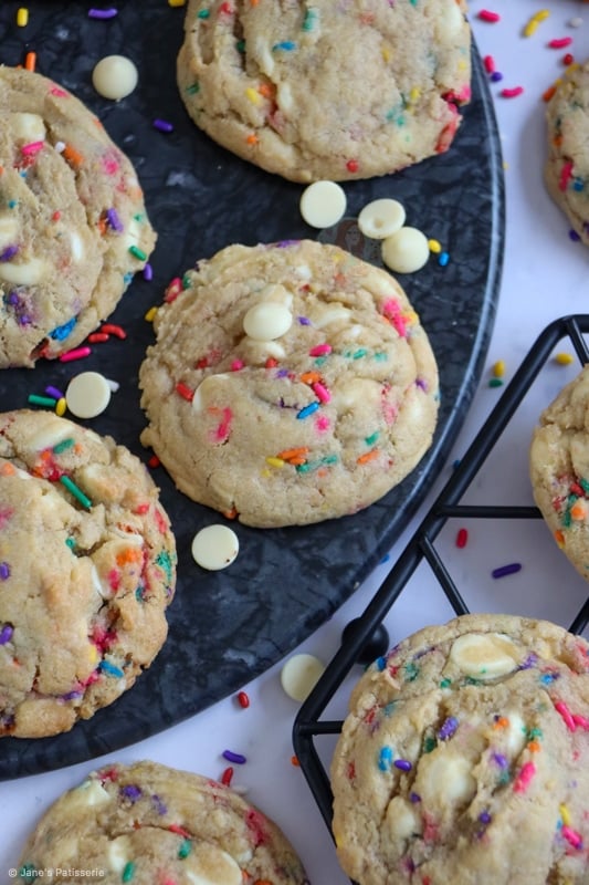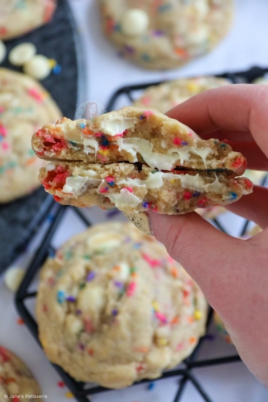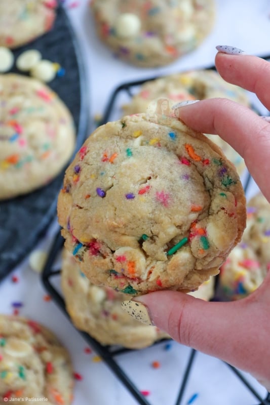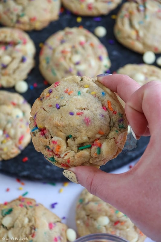 Therefore, because this is for my funfetti cookie recipe, you still need some gorgeous sprinkles that I whole heartedly recommend, but as they’re not baked for nearly as long as a funfetti cake is, it makes it a tad easier!