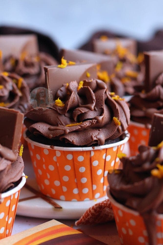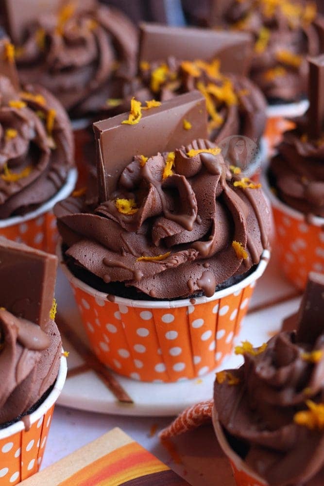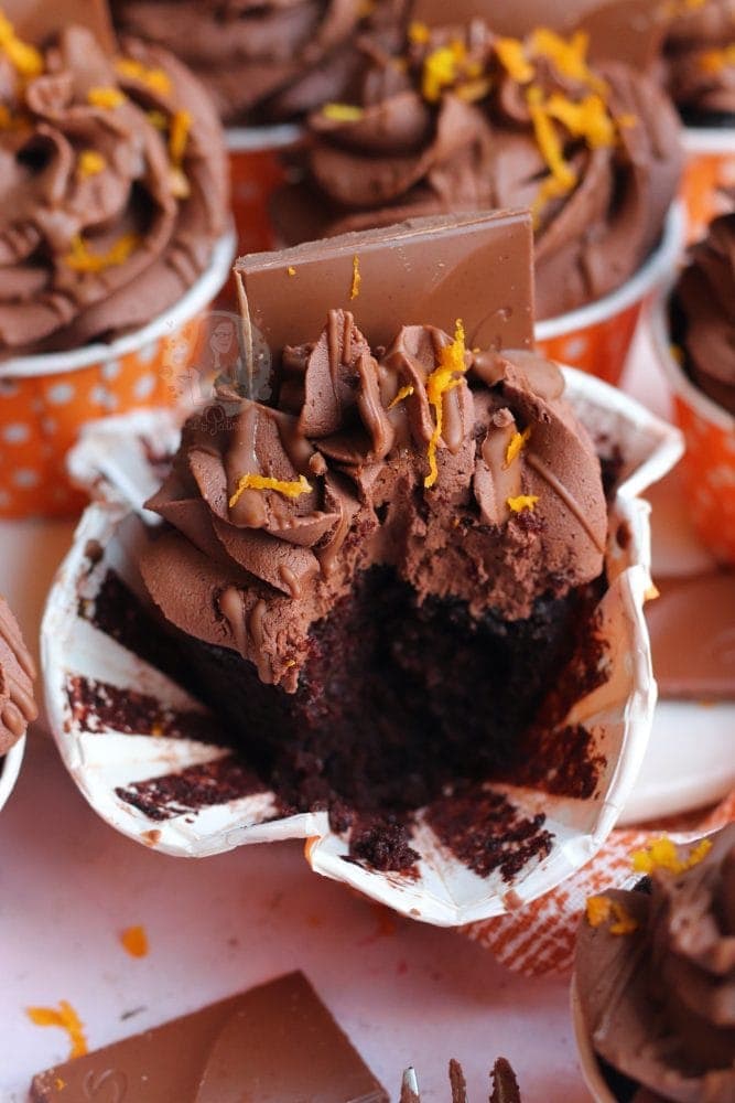 Fudgey and delicious vegan chocolate orange cupcakes with a chocolate orange sponge, frosting and more!