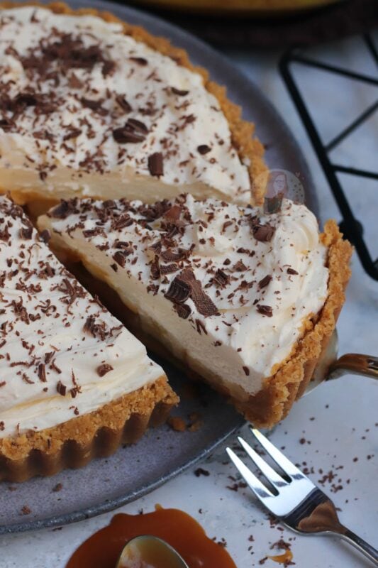 I followed a similar idea to my Lemon Meringue Cheesecake in using a tart/pie tin – I wanted something that would more easily contain the caramel as it stays quite runny! Just like my Rolo Tart as well.