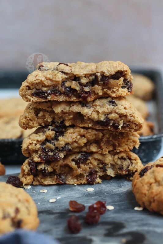 I’ve seen varying recipes for these over the years, with some using far more oats, and some using far less – but I found my personal favourite was a 50/50 mix!.You get enough oats for that delicious flavour, but also enough flour to make sure it remains a good cookie.
