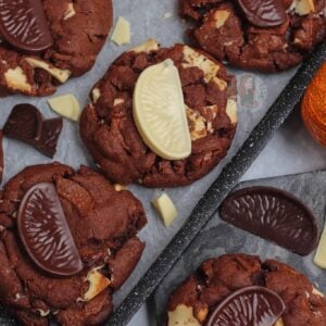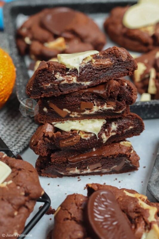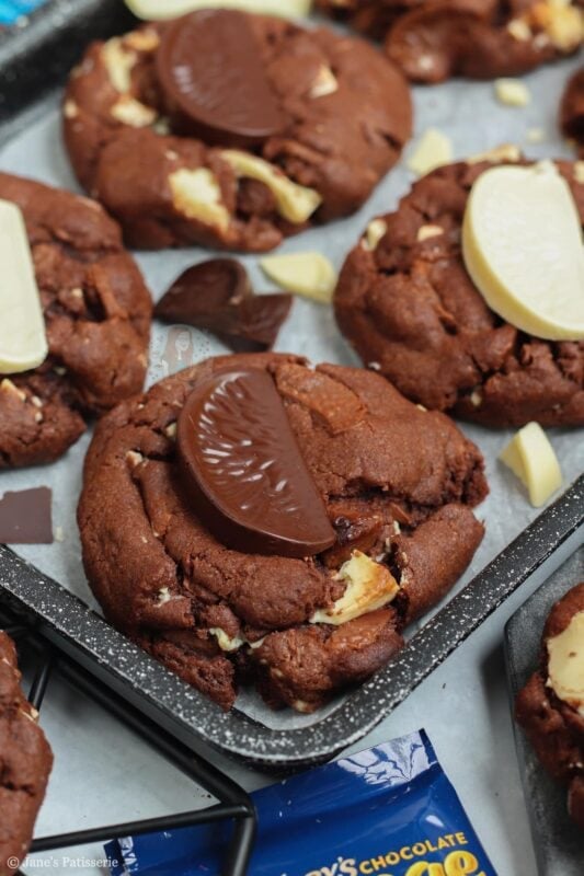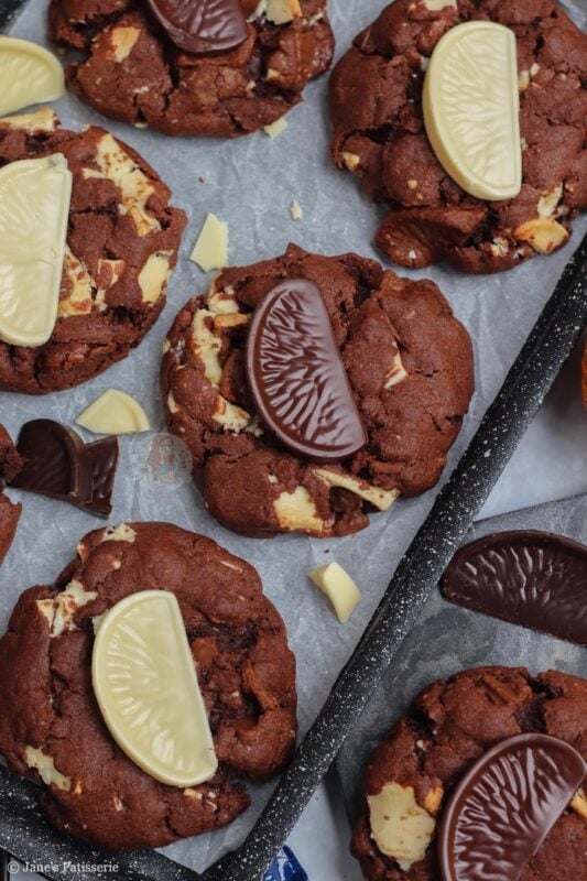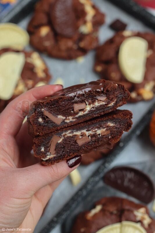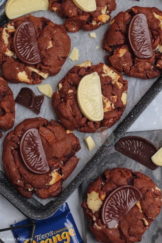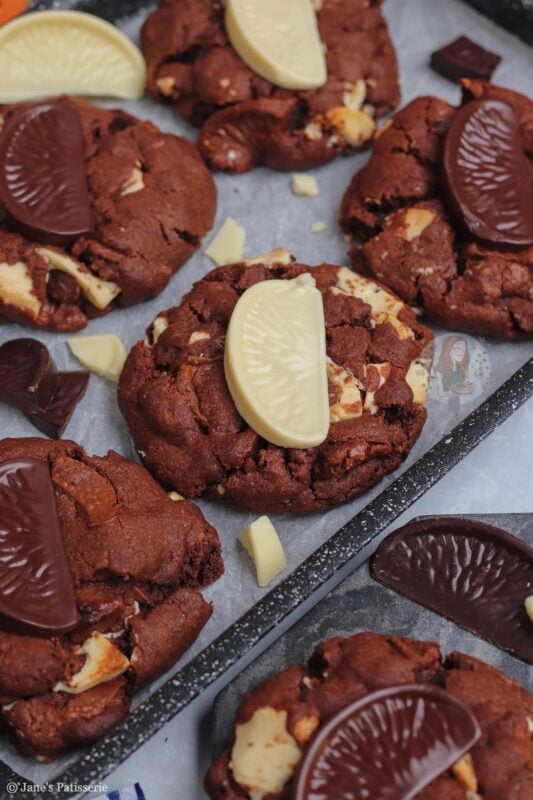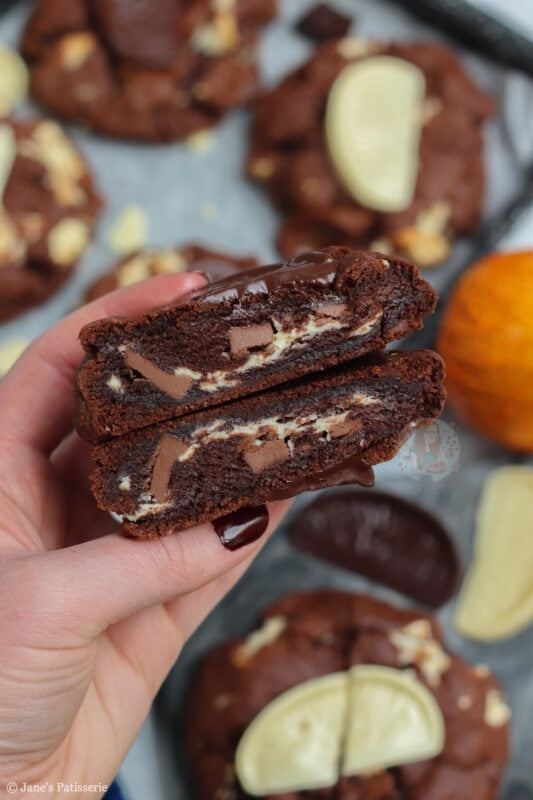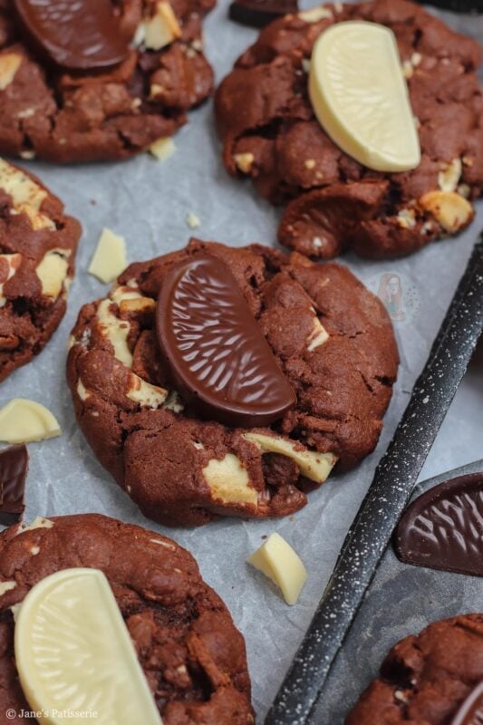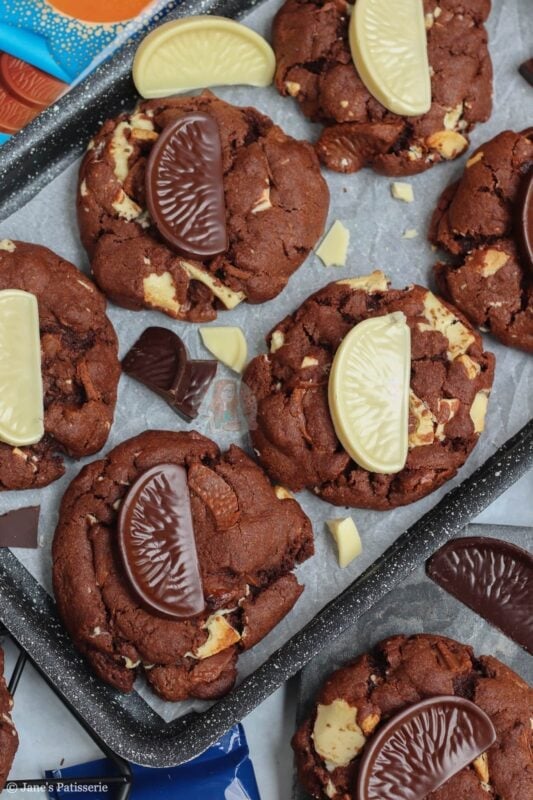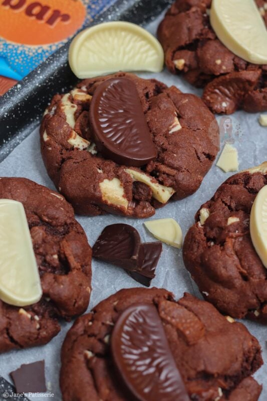 Of course, they won’t be around all the time – but you can use any flavour Terry’s chocolate orange you want. Dark, milk or white – or, you can use a different chocolate orange themed chocolate! Lindt, Cadbury’s orange buttons, and so on – you can even just use plain flavour and use the orange extract in the cookie for the orange!