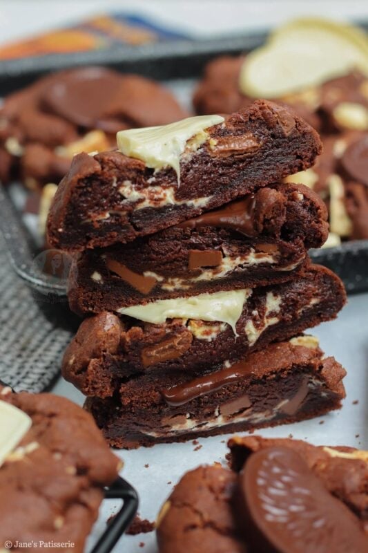I decided for these to use my triple chocolate NYC cookies as the start – because I adore the chocolate base. They are, of course, extremely similar to my Terry’s chocolate orange cookies that have been on my blog for five years already though!