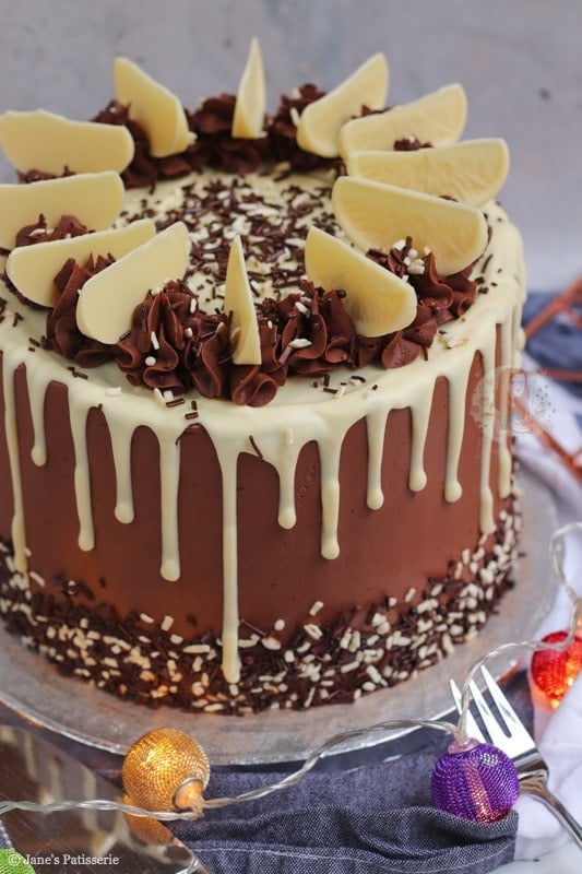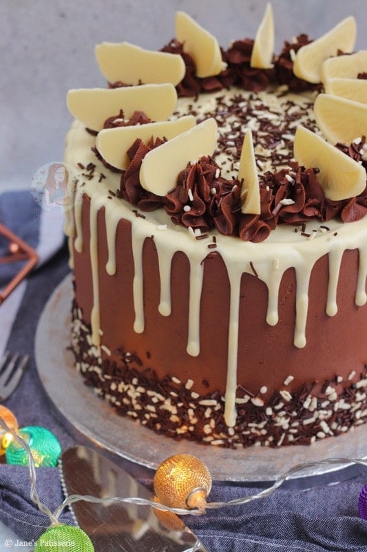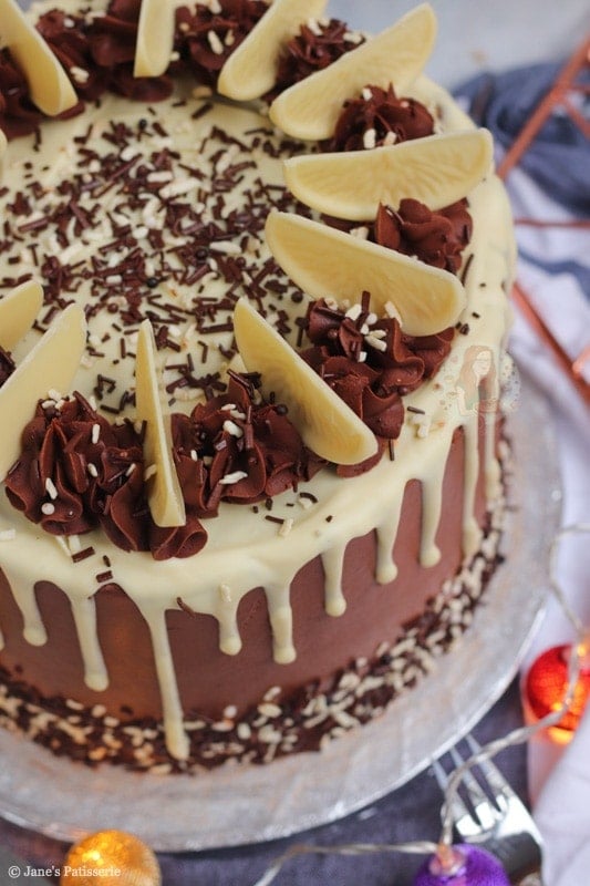 It’s fairly similar to my 27th birthday cake from last year, but also my the bottom tier of my two-tiered celebration cake! I am an absolute creature of habit when it comes to baking cake, and with the limited edition white chocolate orange out at the moment I wanted to incorporate them somehow!
