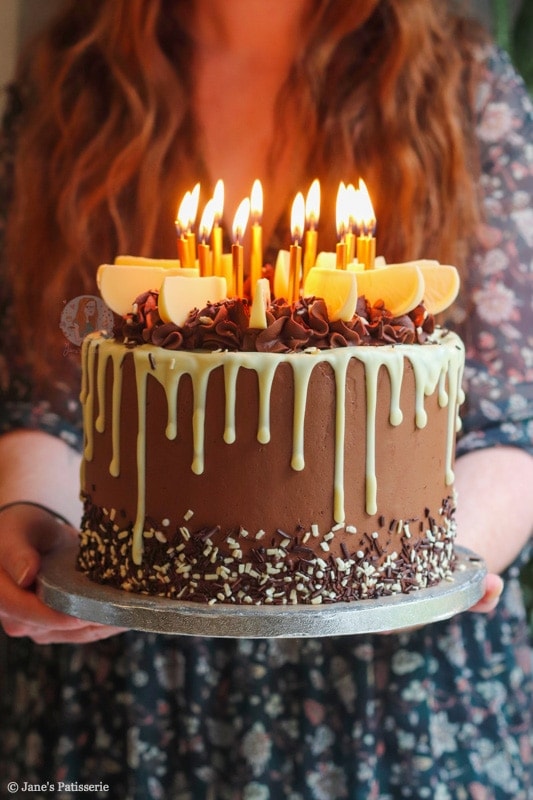 A recipe for my 28th birthday cake… chocolate cake, chocolate buttercream, chocolate orange ganache and more!