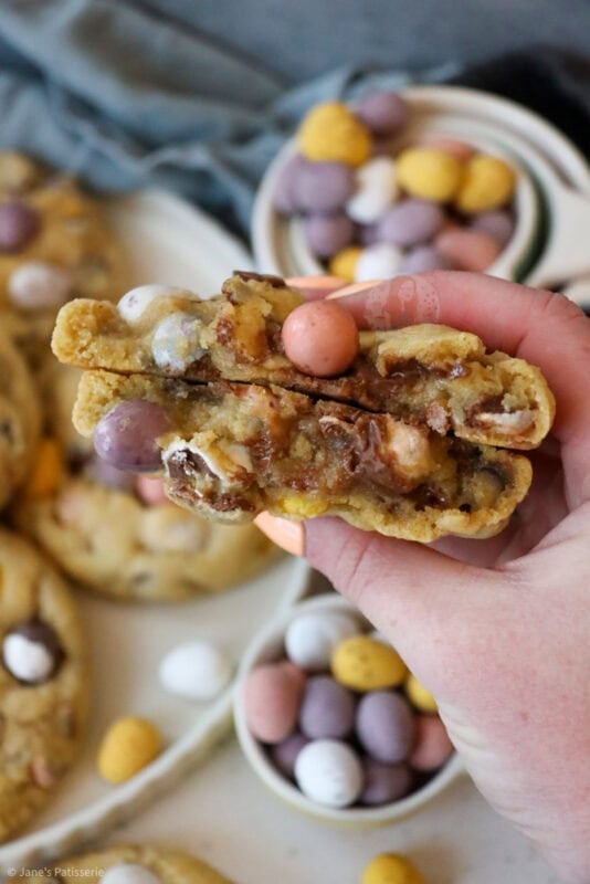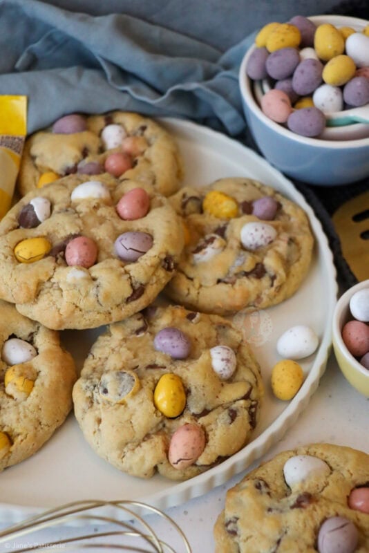 Anyway… MINI EGG NYC COOKIES!! This recipe was always going to happen.. how could it not?! 2020 brought the year of NYC Cookies to my blog, and they are still baked over and over.