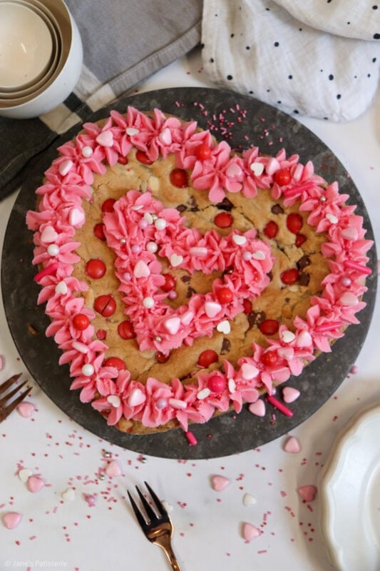 I have always been a bit blah about valentines as most things are just extortionately over priced, and just not that great… but seeing as everyone is at home this year, and homemade gifts are the best, why not make your loved one a giant cookie?!
