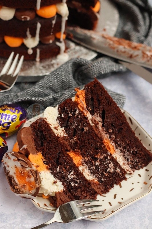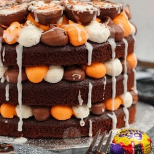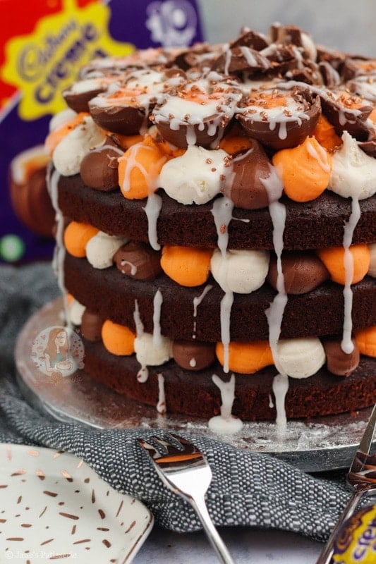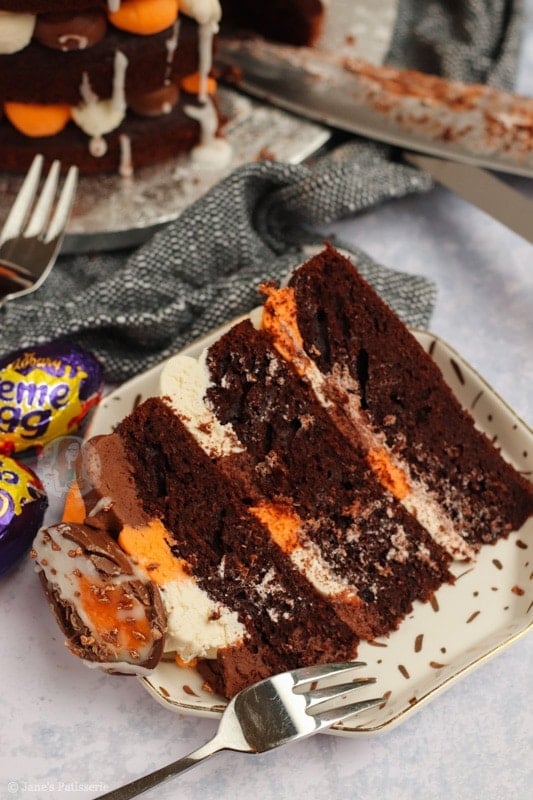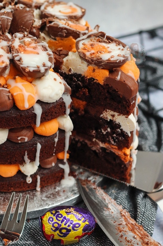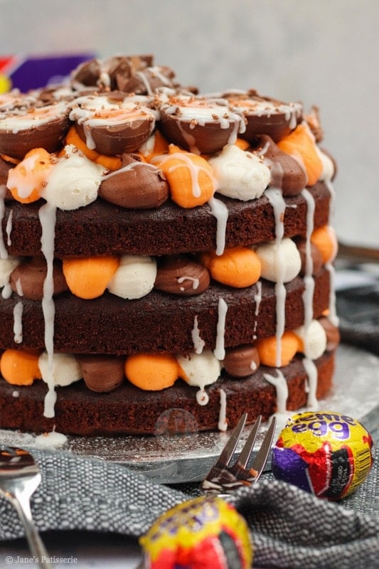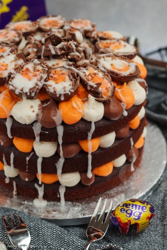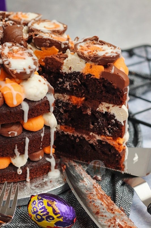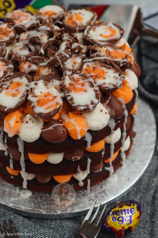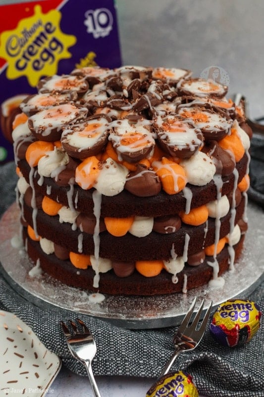 The idea of it is the decoration anyway! All about the colours. All about the explosion of Creme Egg on this delightful layer cake. I hope you love this recipe! Enjoy! x