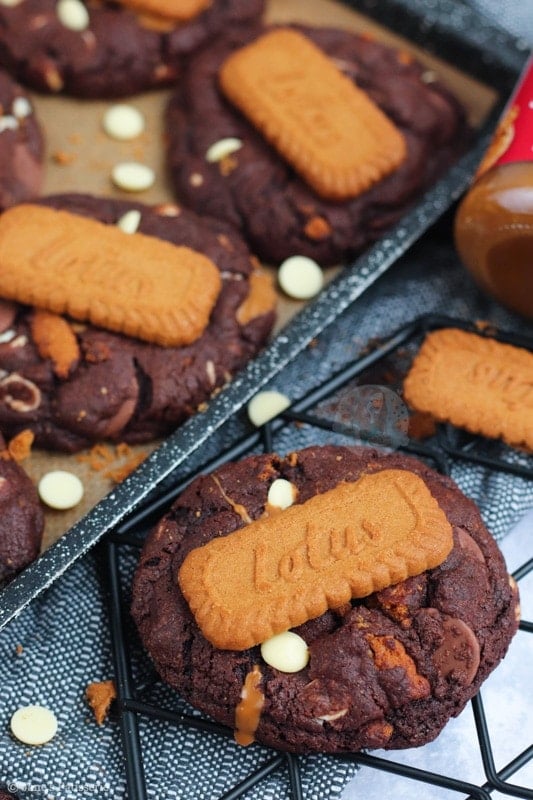 I decided to use the same base cookie as I personally adore the double/triple chocolate flavours with the biscoff. You can make them plain or vanilla however by using 300g plain flour total!