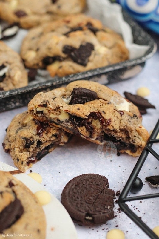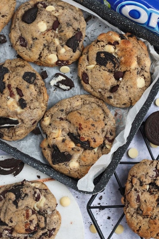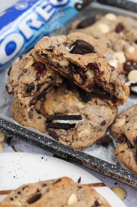 I had a craving recently where I wanted to make another biscuit themed cookie because my Biscoff stuffed NYC Cookies went down so well.. so I turned to another one of my favourite biscuits! Oreos! I just can’t resist them.