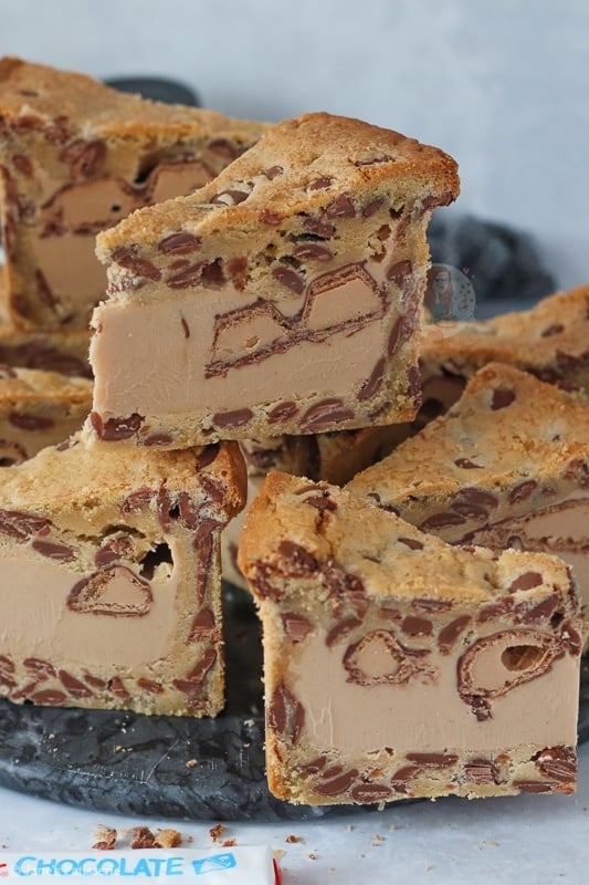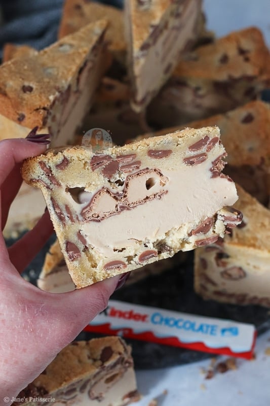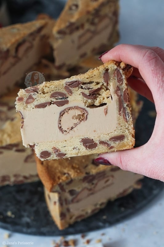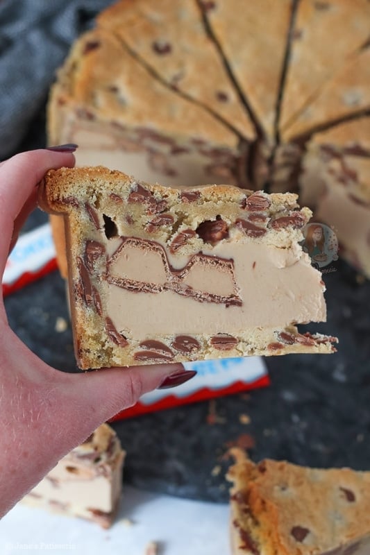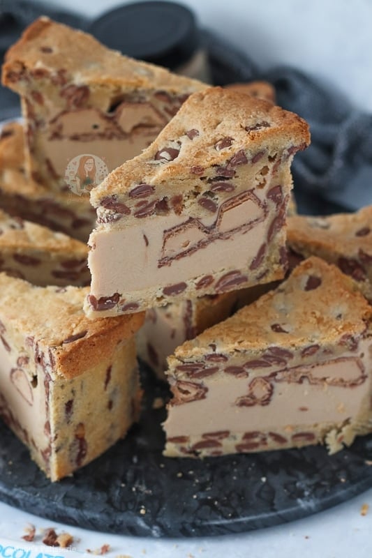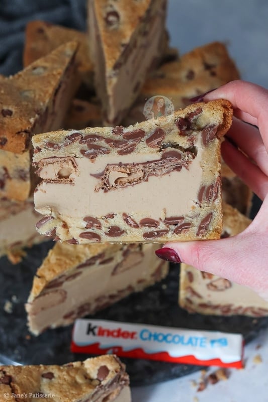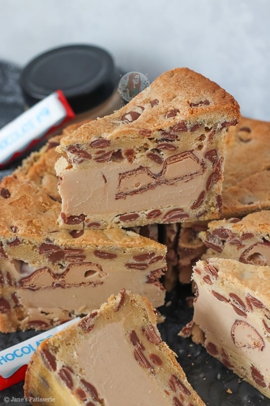 I would say the main base of this recipe is a mixture of my NYC cookies and my cookie bars such as my Kinder Bueno cookie bars! I felt like I needed a drier cookie dough so that it’s easier to mould and it worked!