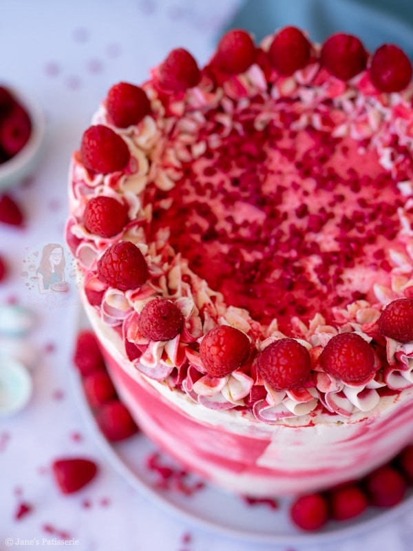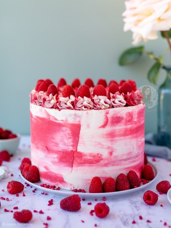 I didn’t add a drip to this cake as I did only really want the flavour to be raspberry – but feel free to add what you want! You can do whatever you want decoration wise – but I thought this was beautiful and I didn’t want to change it too much!