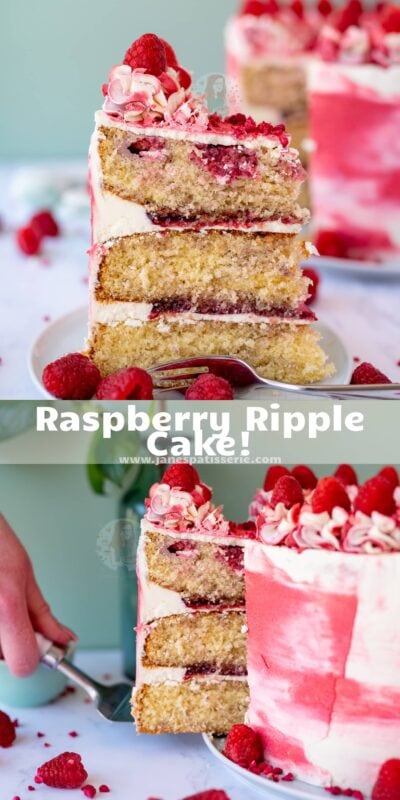 So… raspberry ripple cake anyone?! Honestly… I just love this cake straight from the start. We need to appreciate just how beautiful a bake it is because look at that smudged beautiful buttercream pattern on the outside!