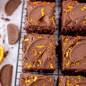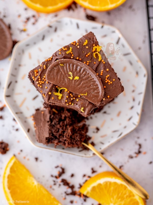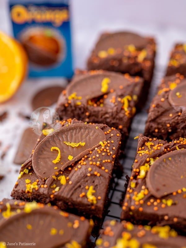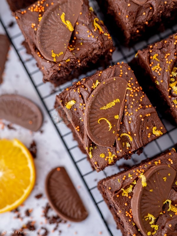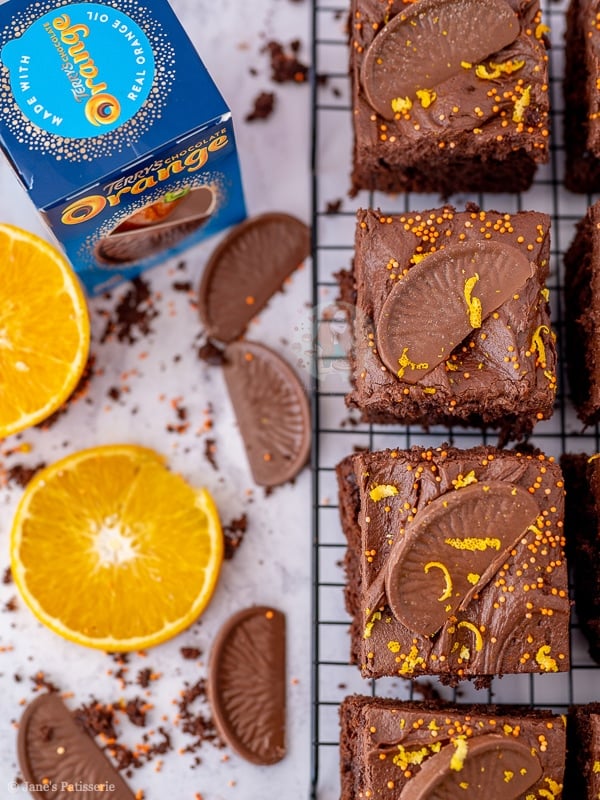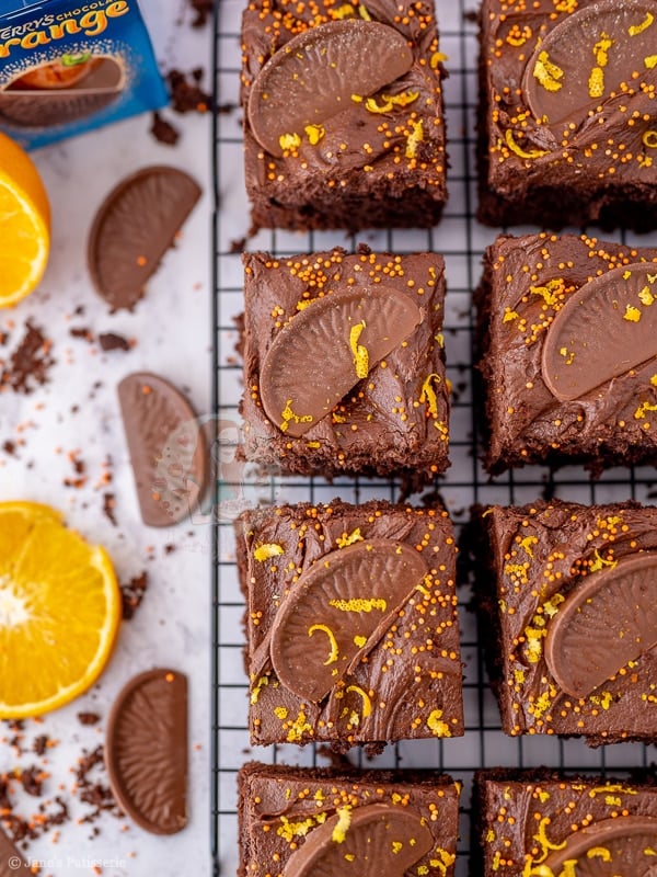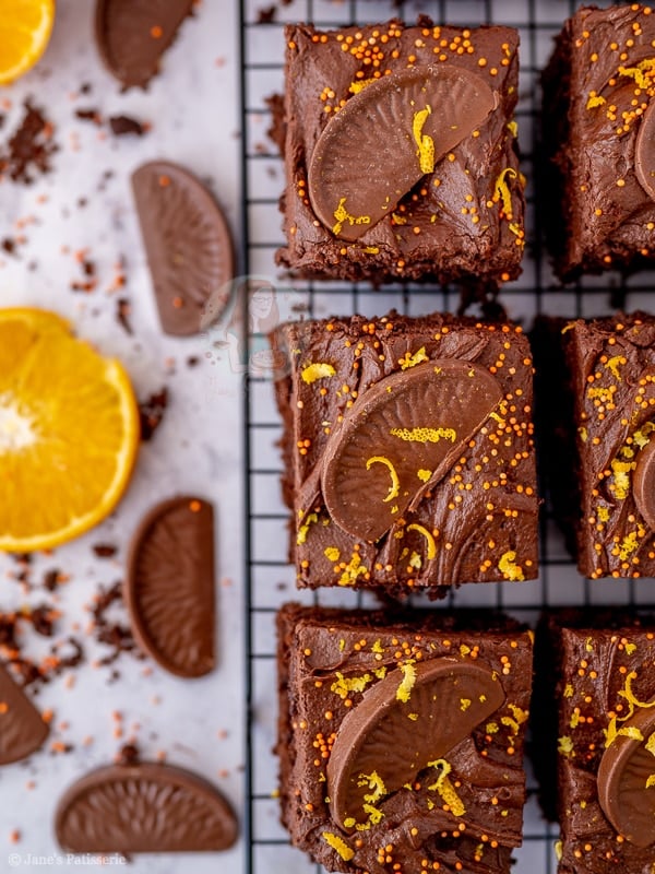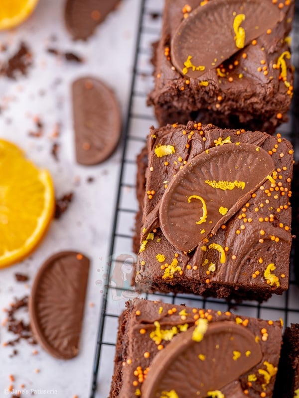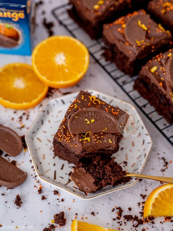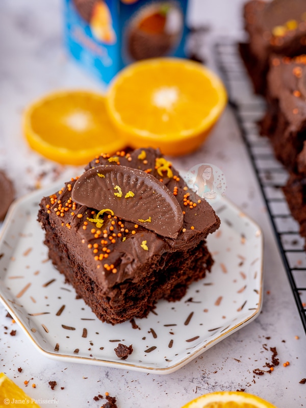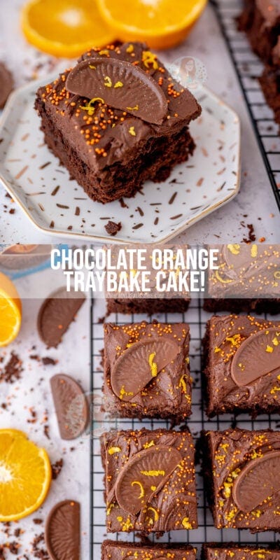 An easy and delicious chocolate orange traybake cake with a chocolate orange fudge cake, and chocolate orange buttercream frosting!