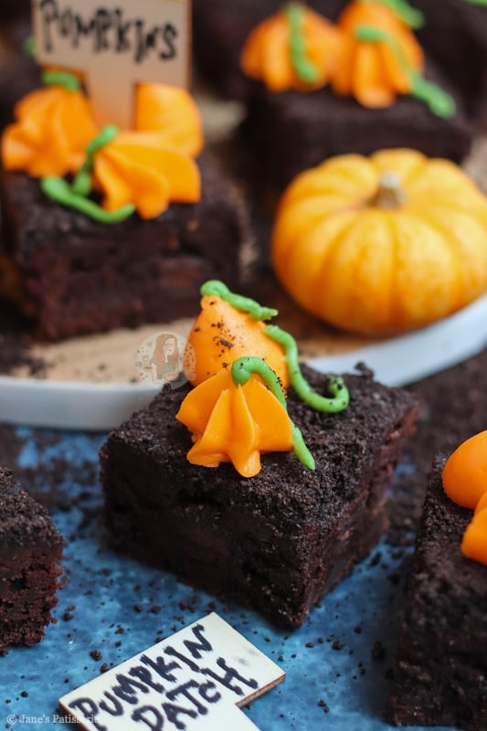 We are halfway through October, and I still have a good few bakes to come for spooky season… although, these pumpkin patch brownies aren’t necessarily spooky, they are cute and delicious instead. JUST LOOK AT THEM!