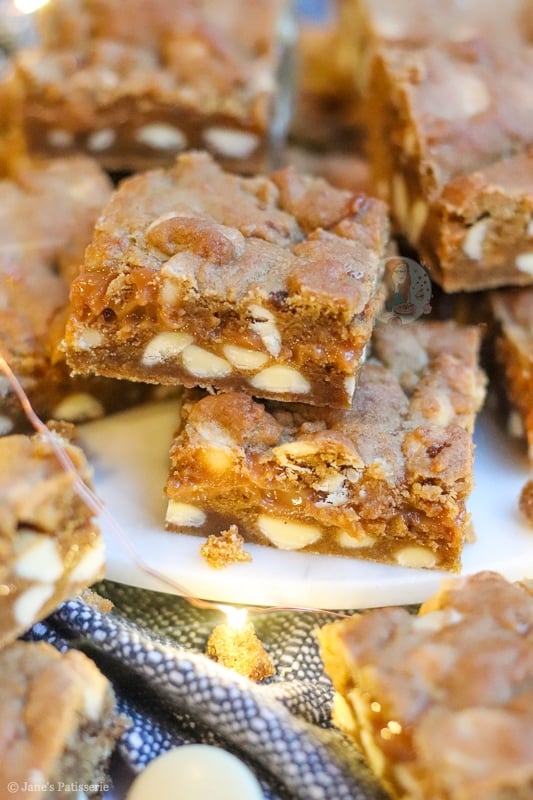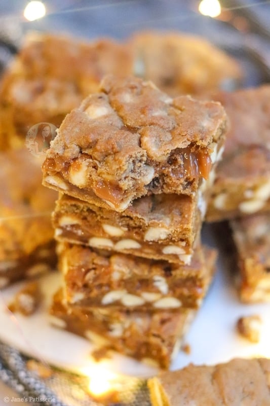 For this my caramel gingerbread cookie bars recipe, I thought white chocolate chips would go the best as they always do – but you can use milk chocolate, or dark chocolate if you prefer… or even a mix!